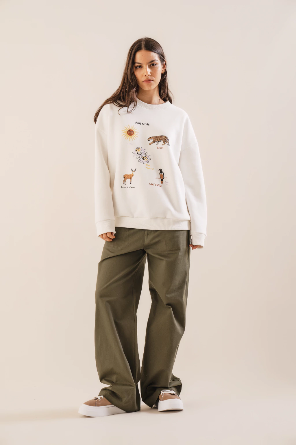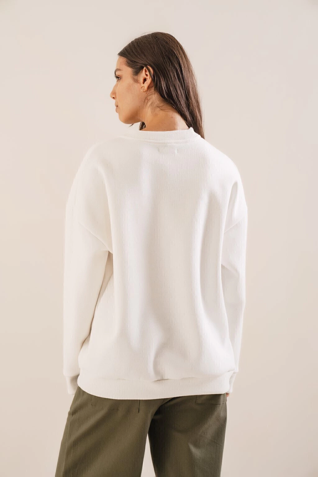 Un buzo de frisa oversize, comodo y amplio.Realizado en tela de mano suave, 100% algodón.Es ideal para dias frios y para usar en looks casual.