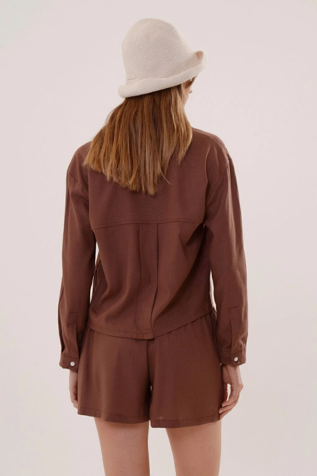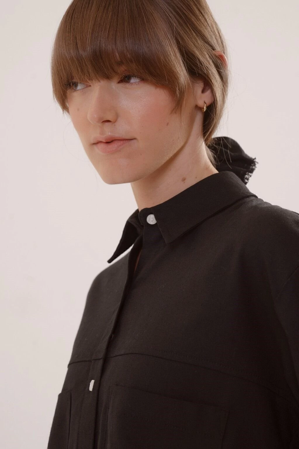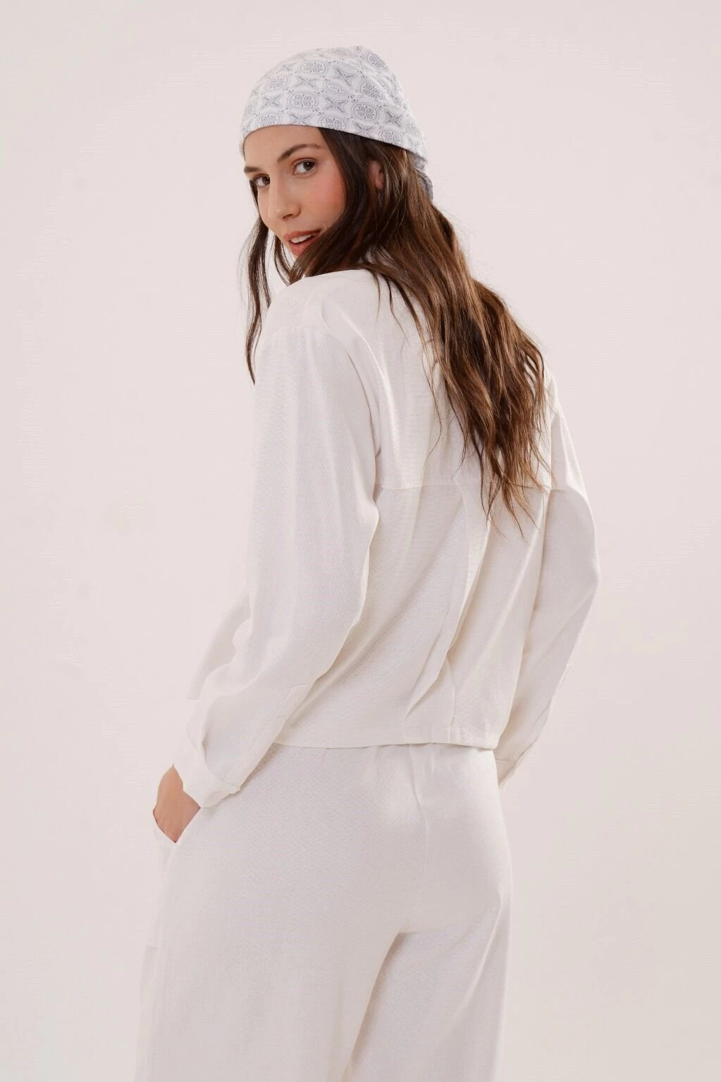 La camisa Amalfitana propone una silueta mas holgada, con recortes en canesu delantero y detalle plisado en espalda, con bolsillos en delantero, es una prenda canchera para usar en todo momento.