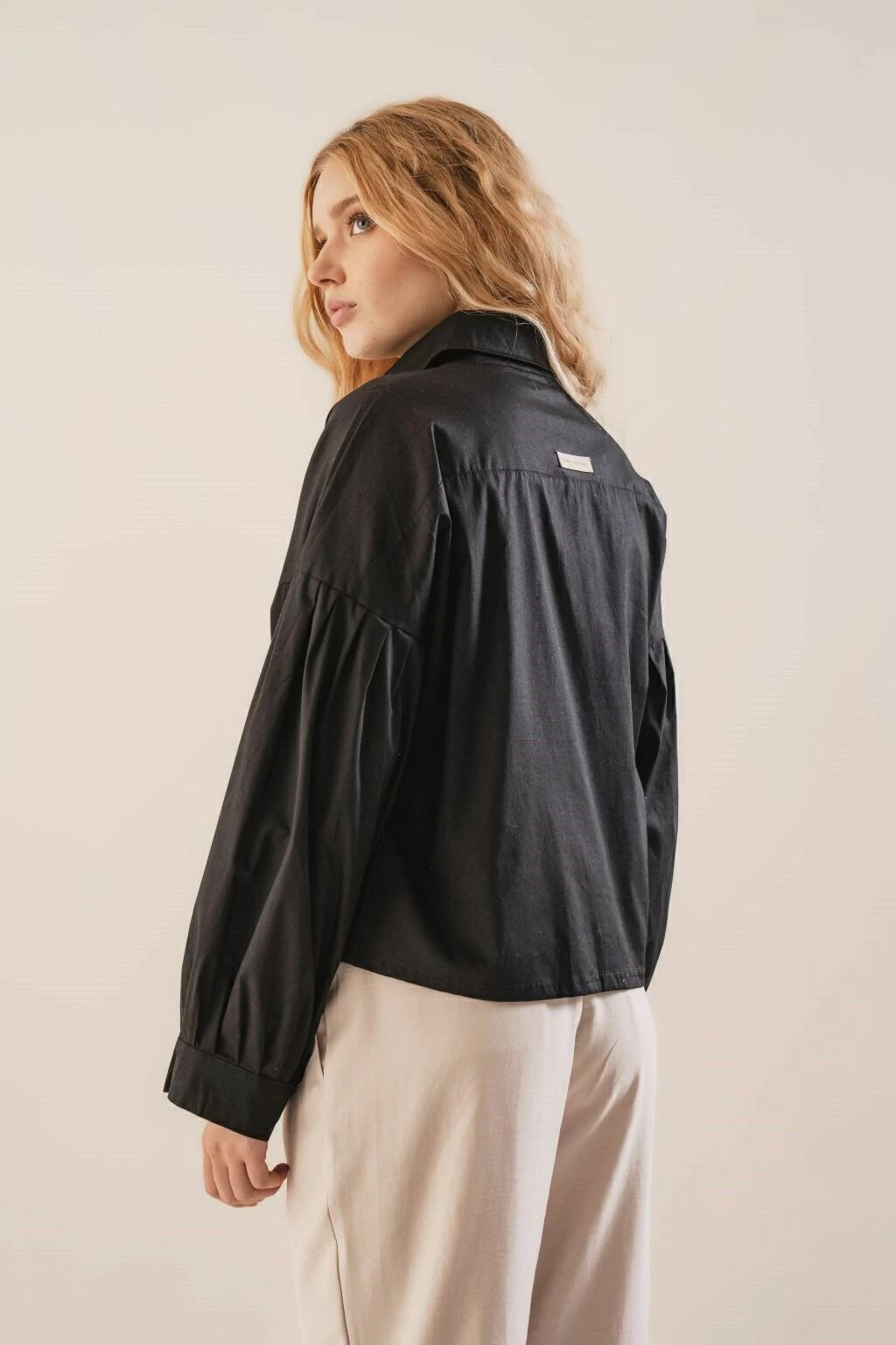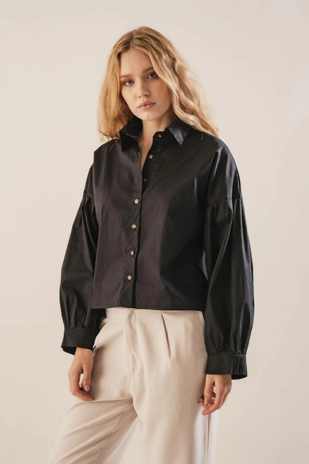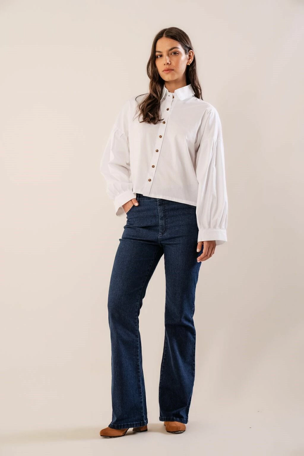 Nuestra camisa jacaranda esta diseñada con mangas bombe, amplias y con cuello clasico. Se complementa muy bien con sweaters, cardigans y pantalones. Tiene detalles de pliegues en los hombros caidos.Para un look muy trendy.