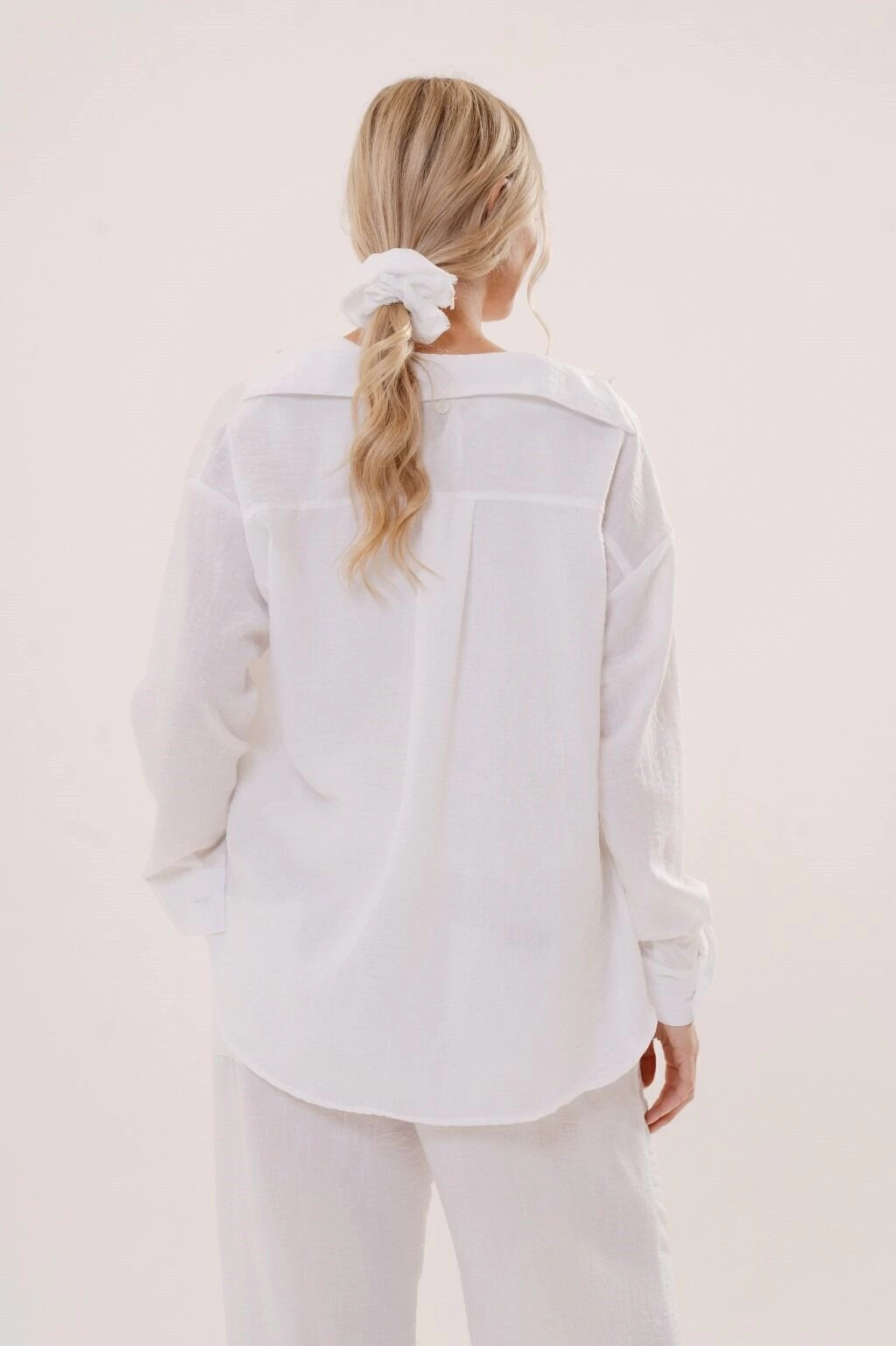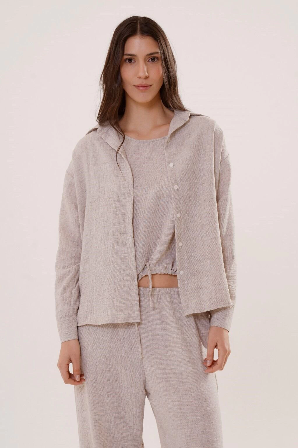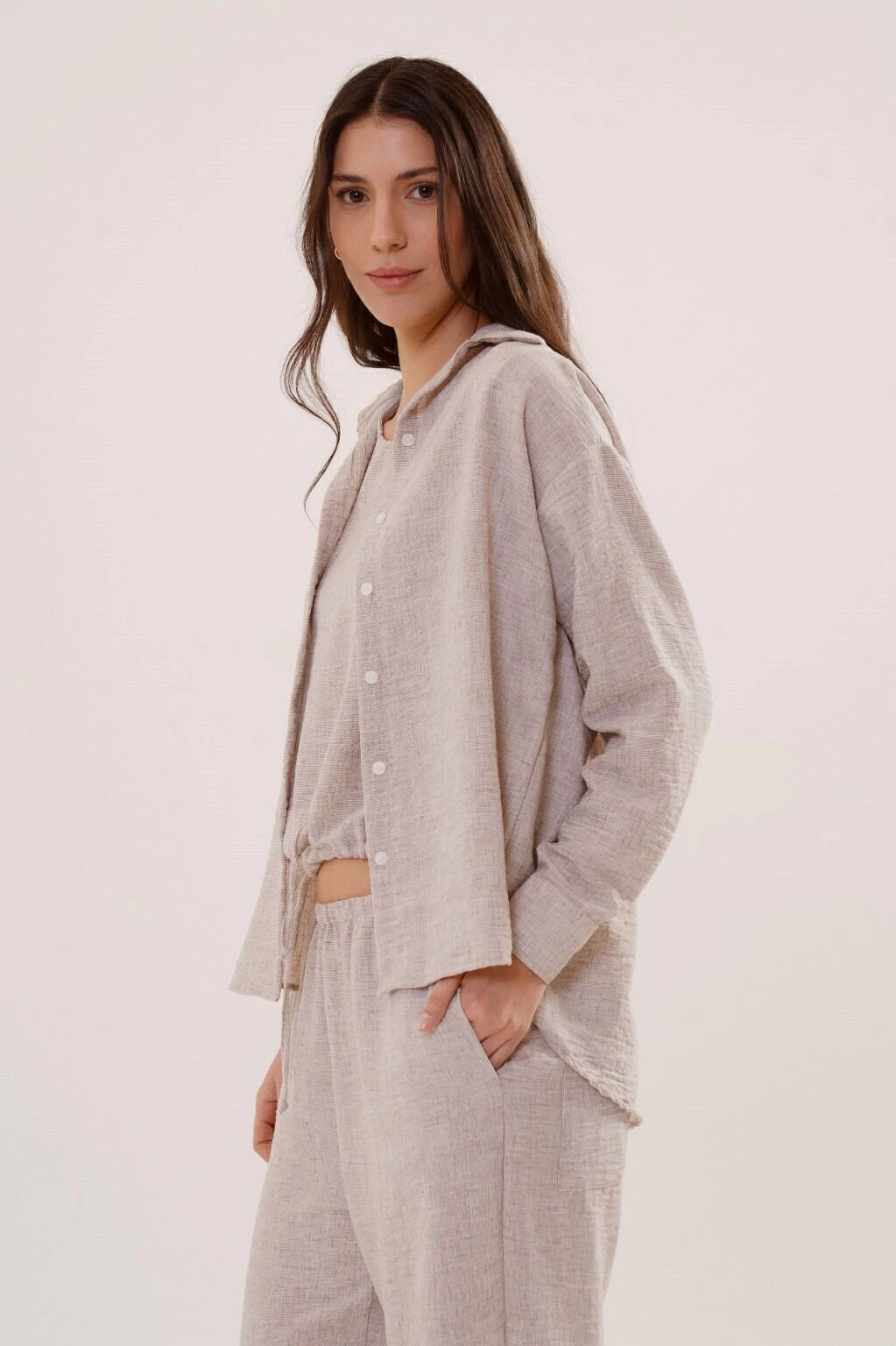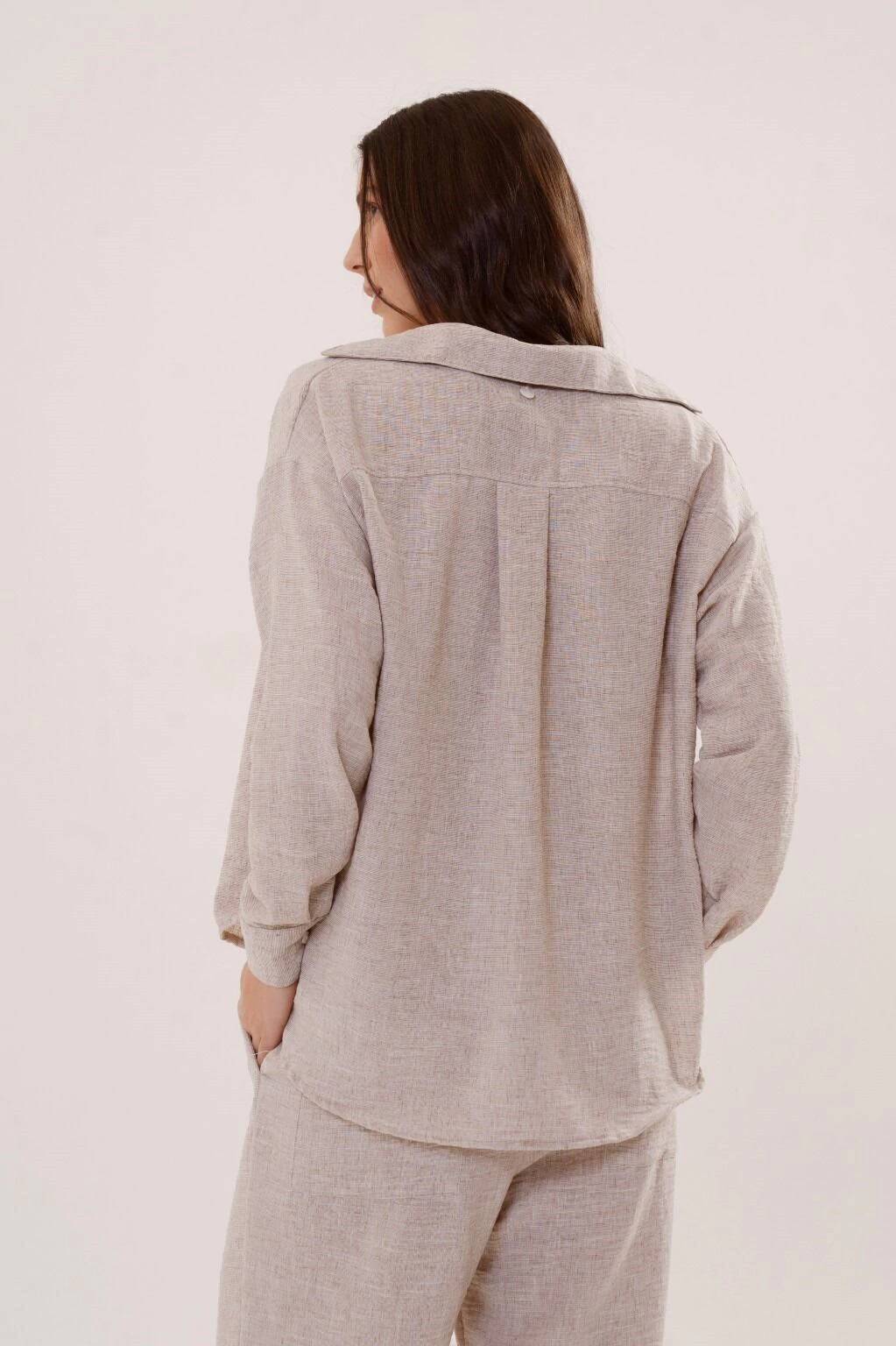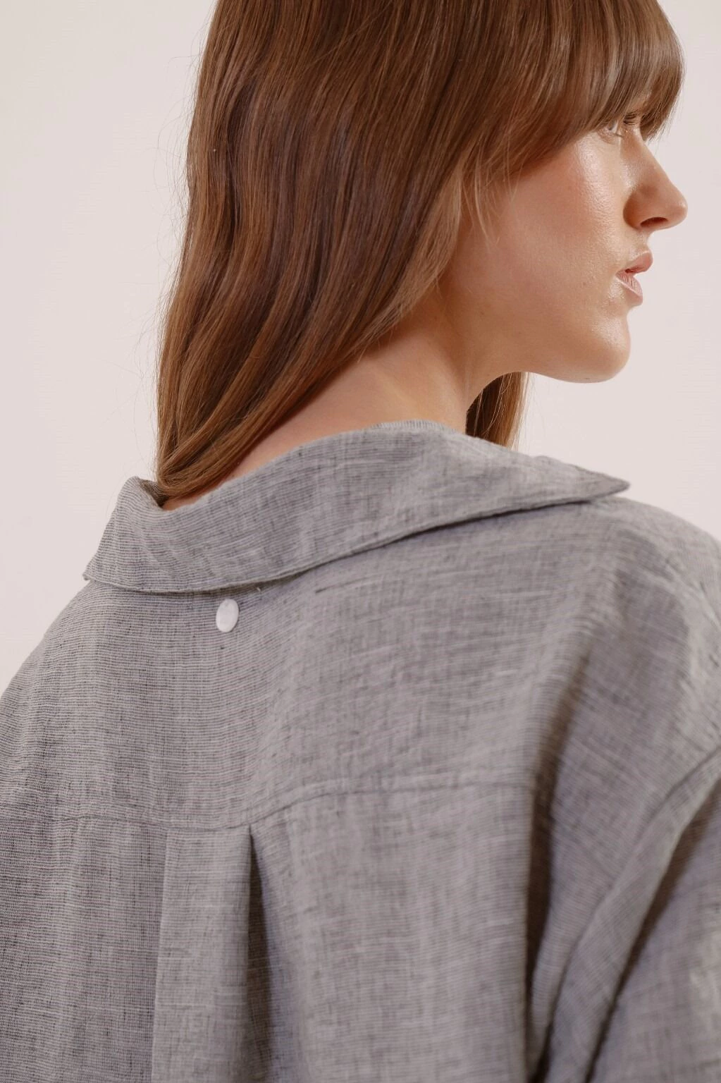 La camisa Viola, de calce suelto, con largo pronunciado en espalda y detalle plisado en canesu de la espalda, resulta en una camisa especial para usar en diversas ocasiones.