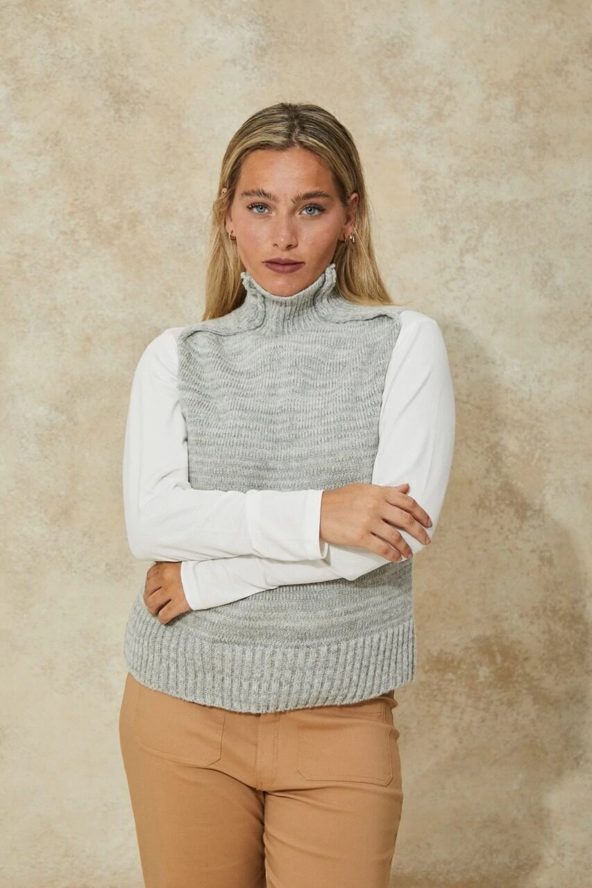 El chaleco mas trend de la colección invernal, con detalles de costuras de vista y tejido en jersey.  Material: 85% Acrílico suavizado, 15% Poliamida