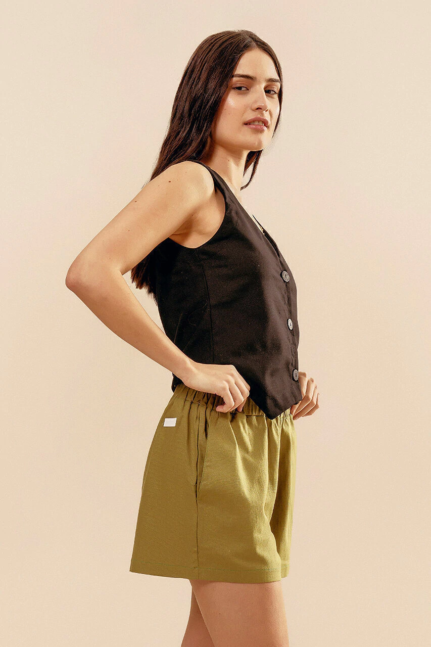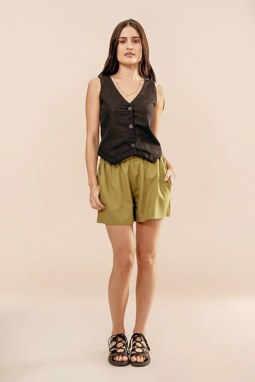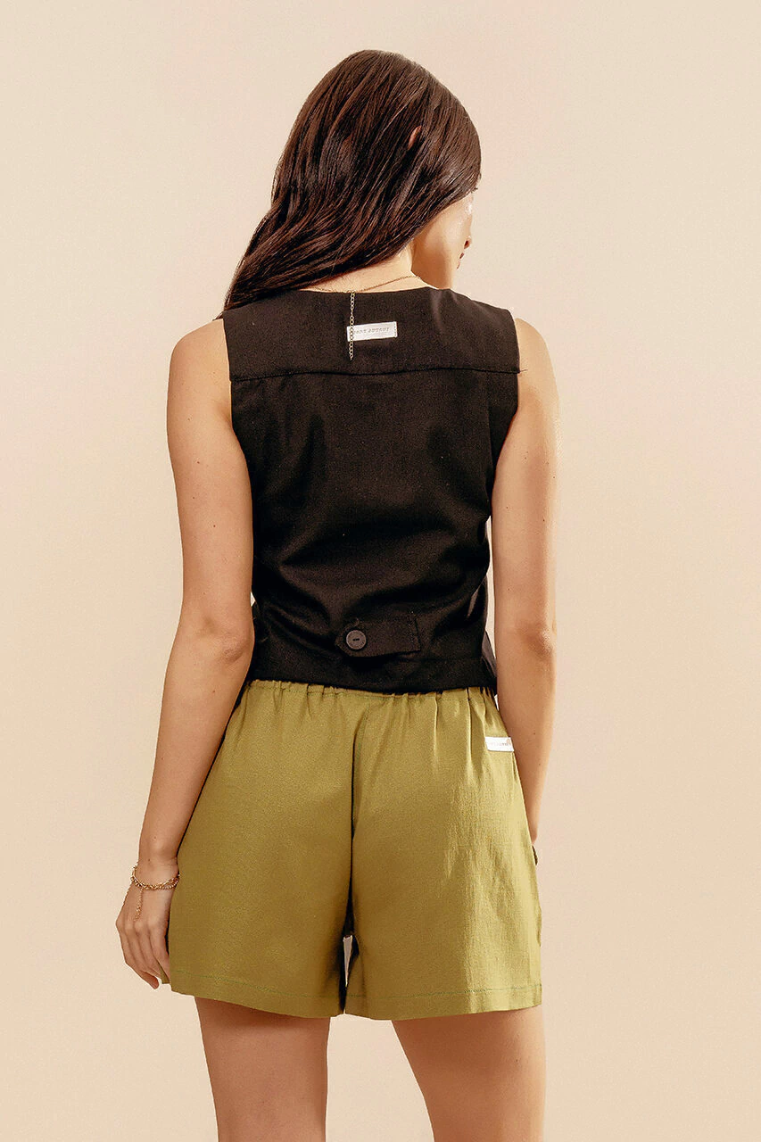 Nuestro chaleco completa los outfits formales pero relajados. Con cuerpo y detalle de charretera en la espalda.