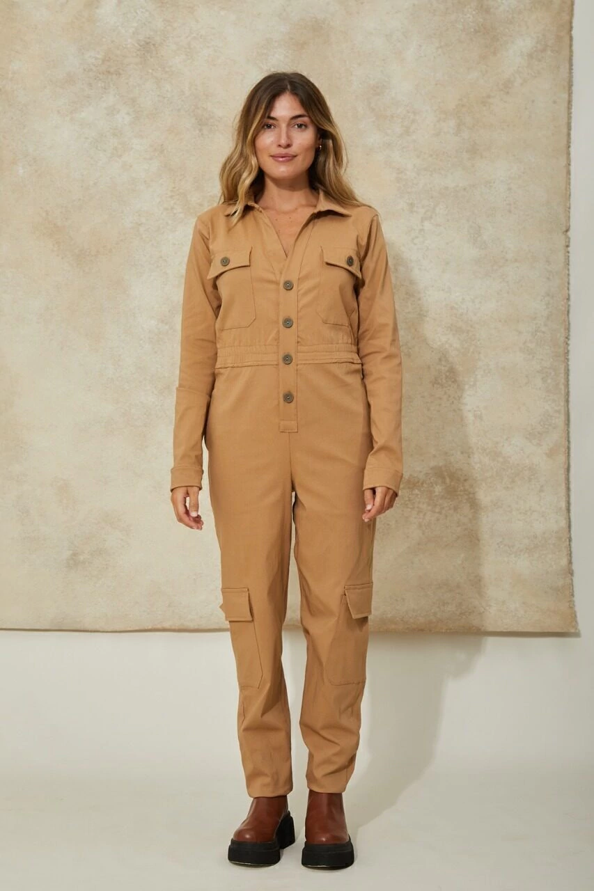 Mono de manga larga, icono de nuestra marca que destaca por su comodidad. De cintura elástica y estilo cargo.