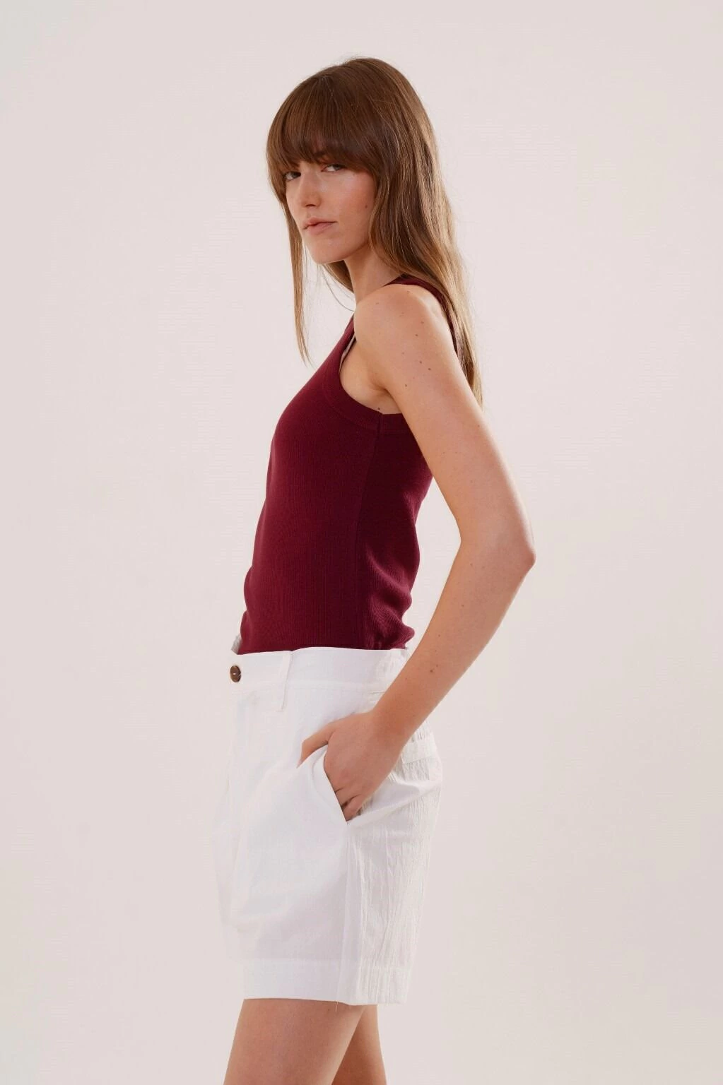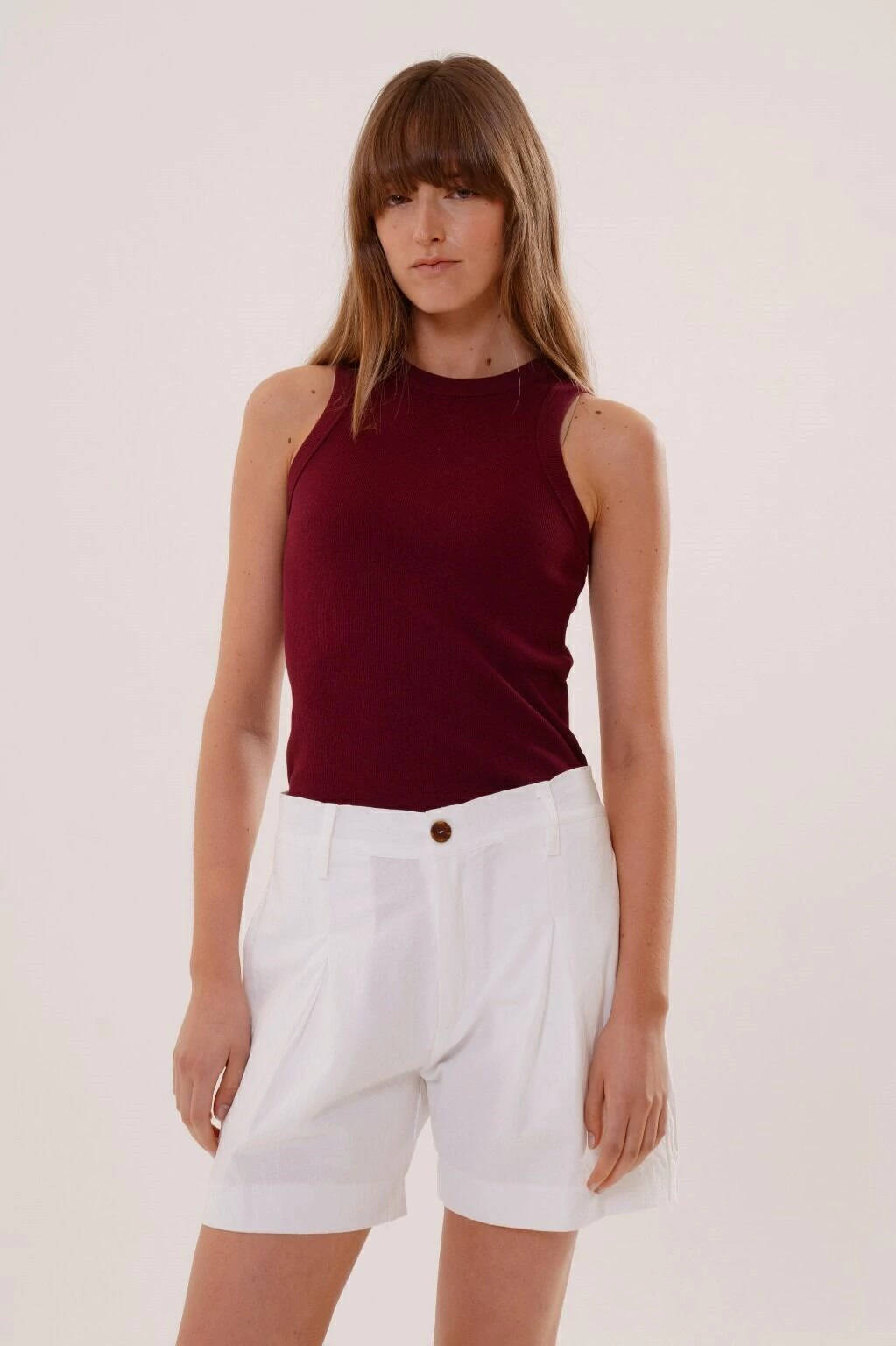 La musculosa Fiordo completa la linea de básicos para este verano. Realizada en tela Morley 100% algodón, de grosor medio y de alta calidad. Tiene cuello redondo y sisas muy cavadas, con detalle de ribb que completa los detalles de confeccion.