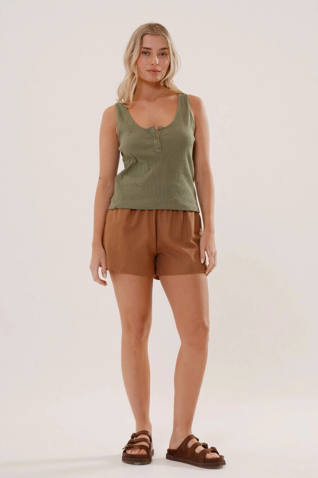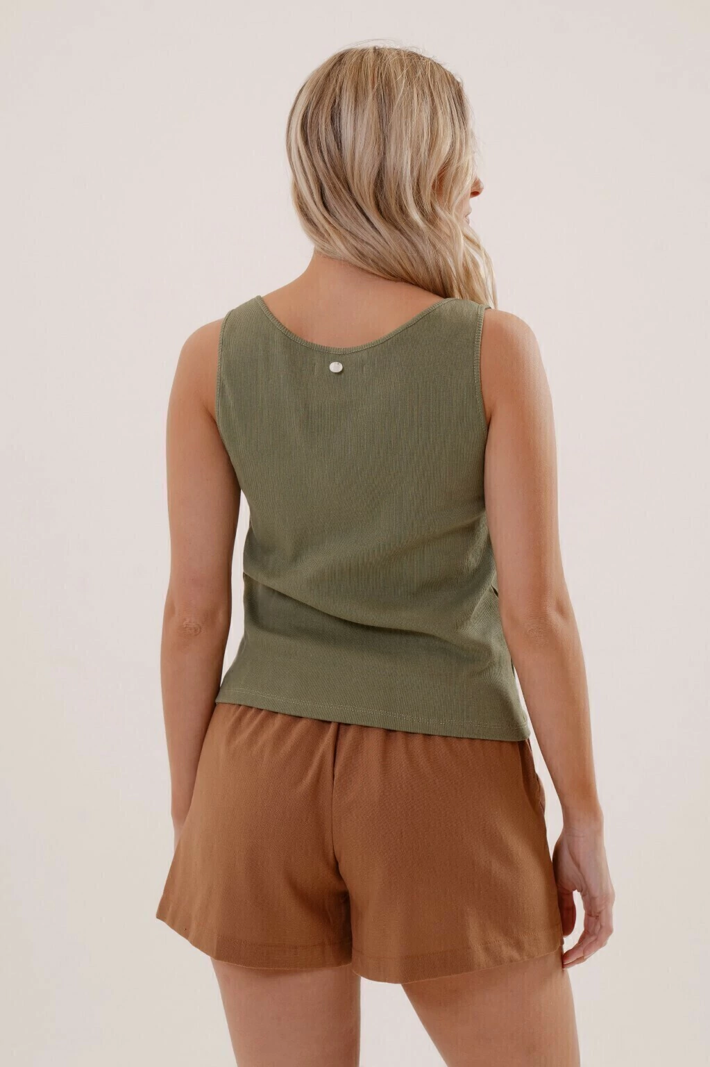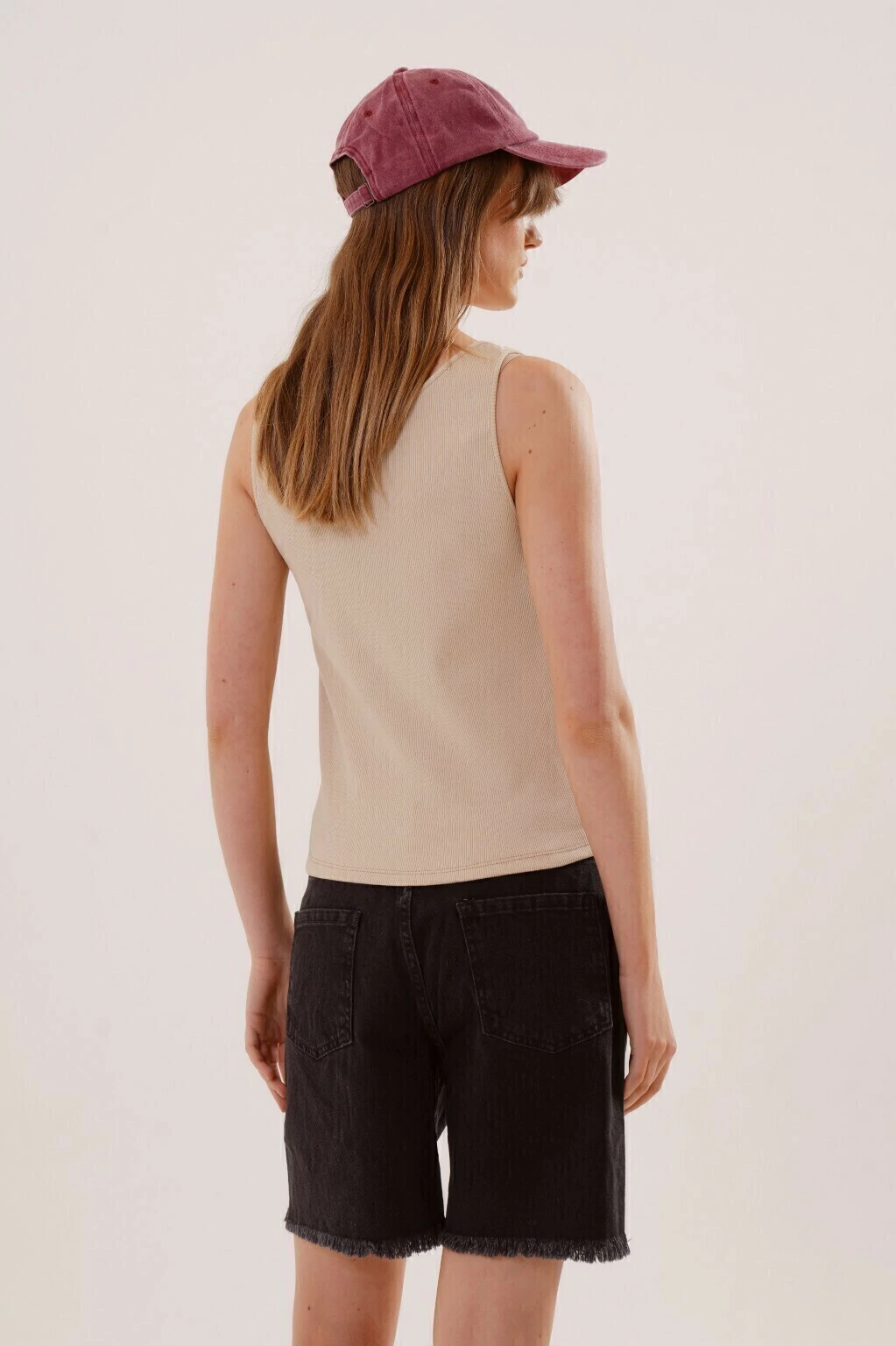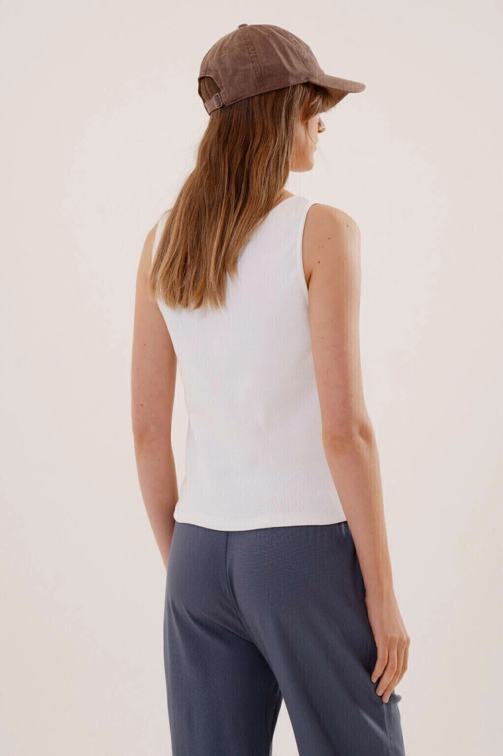 La musculosa Incanto es más que un básico: con su escote redondeado y botones, permite la apertura a gusto, dando un toque casual. De silueta holgada y muy cómoda, realizada en tela Morley 100% algodón.