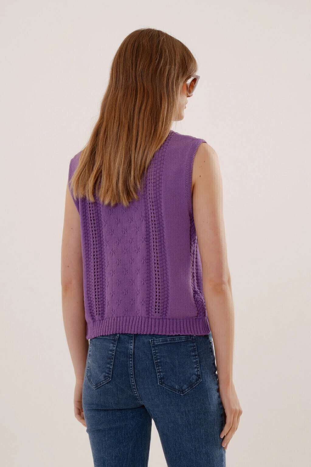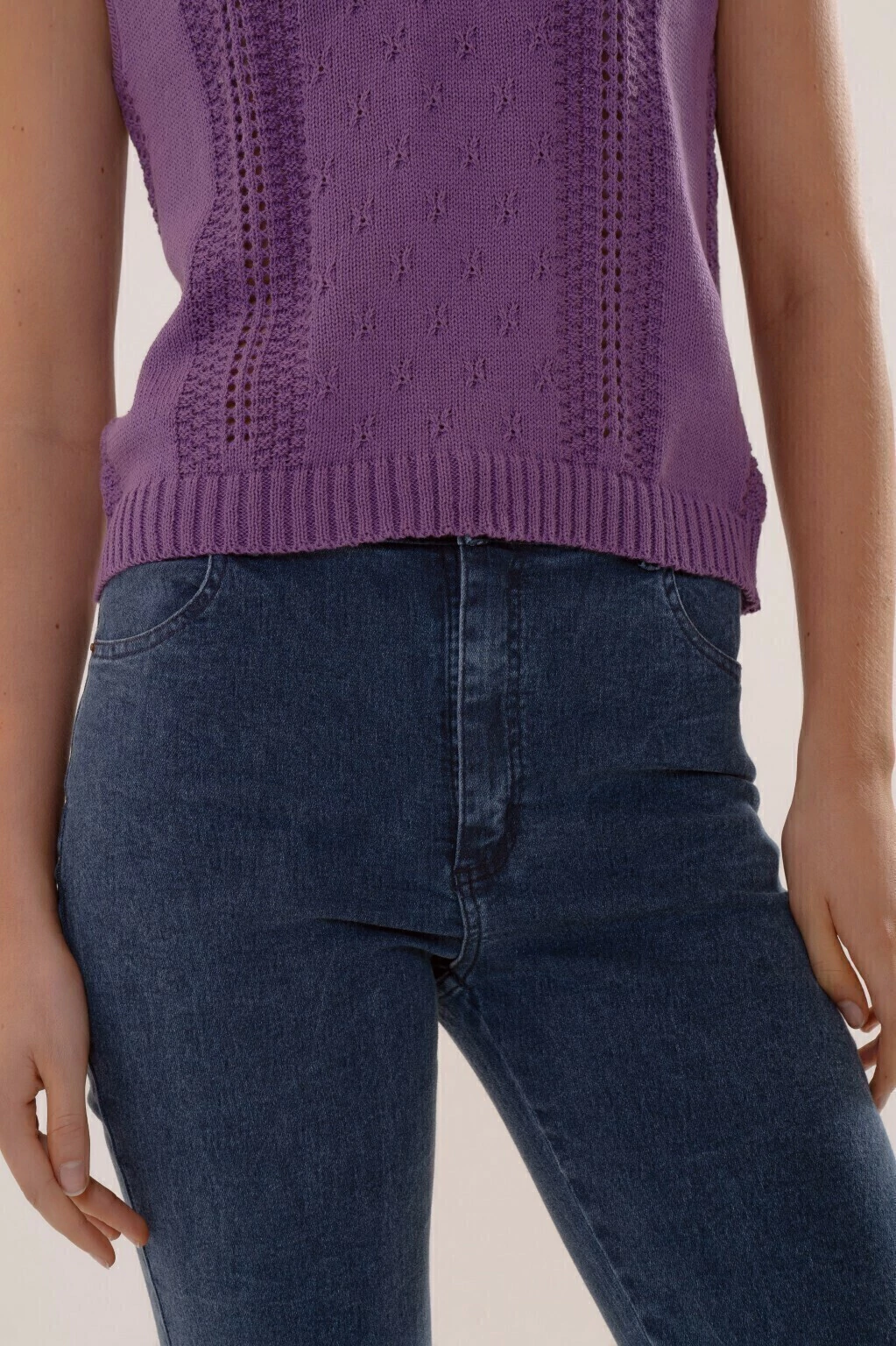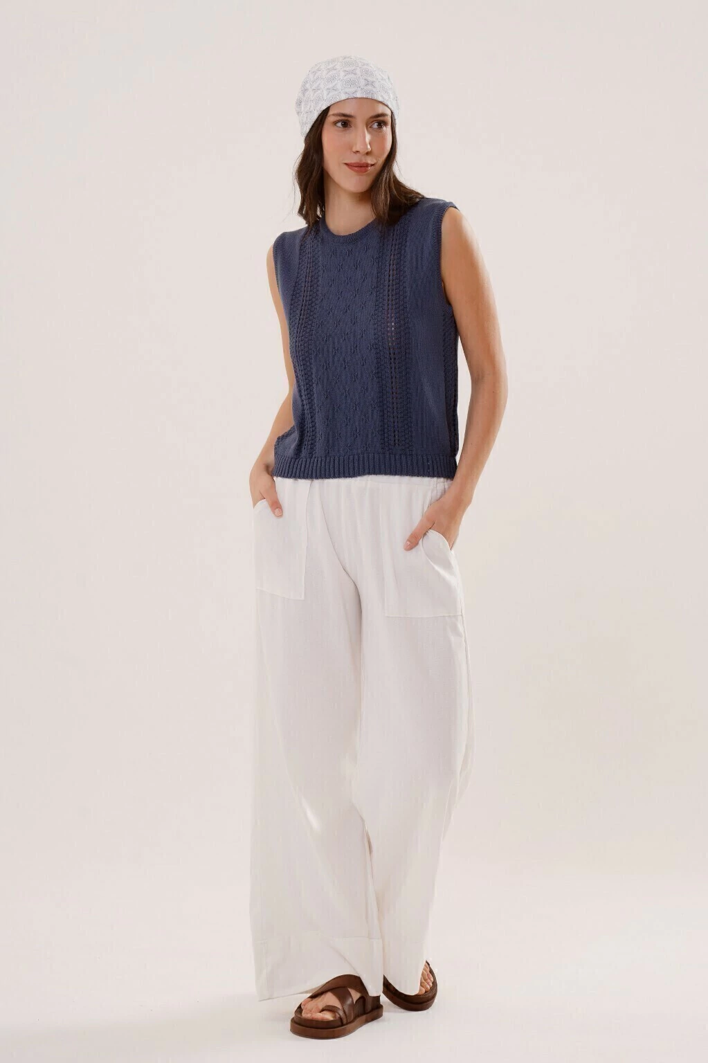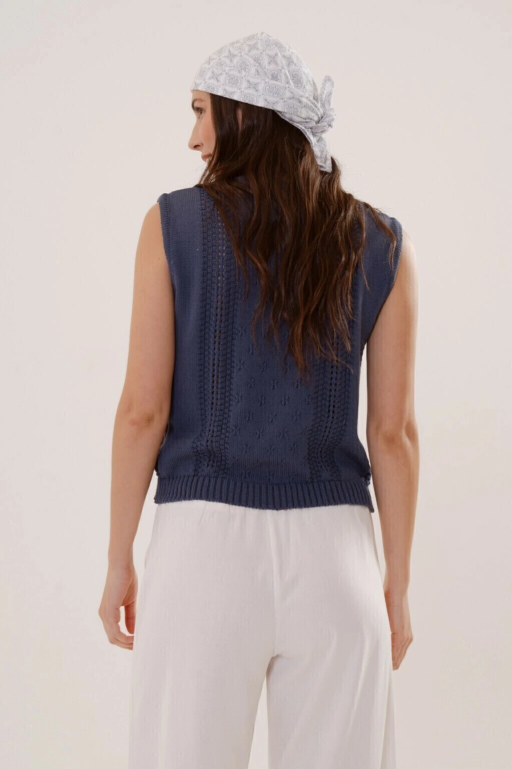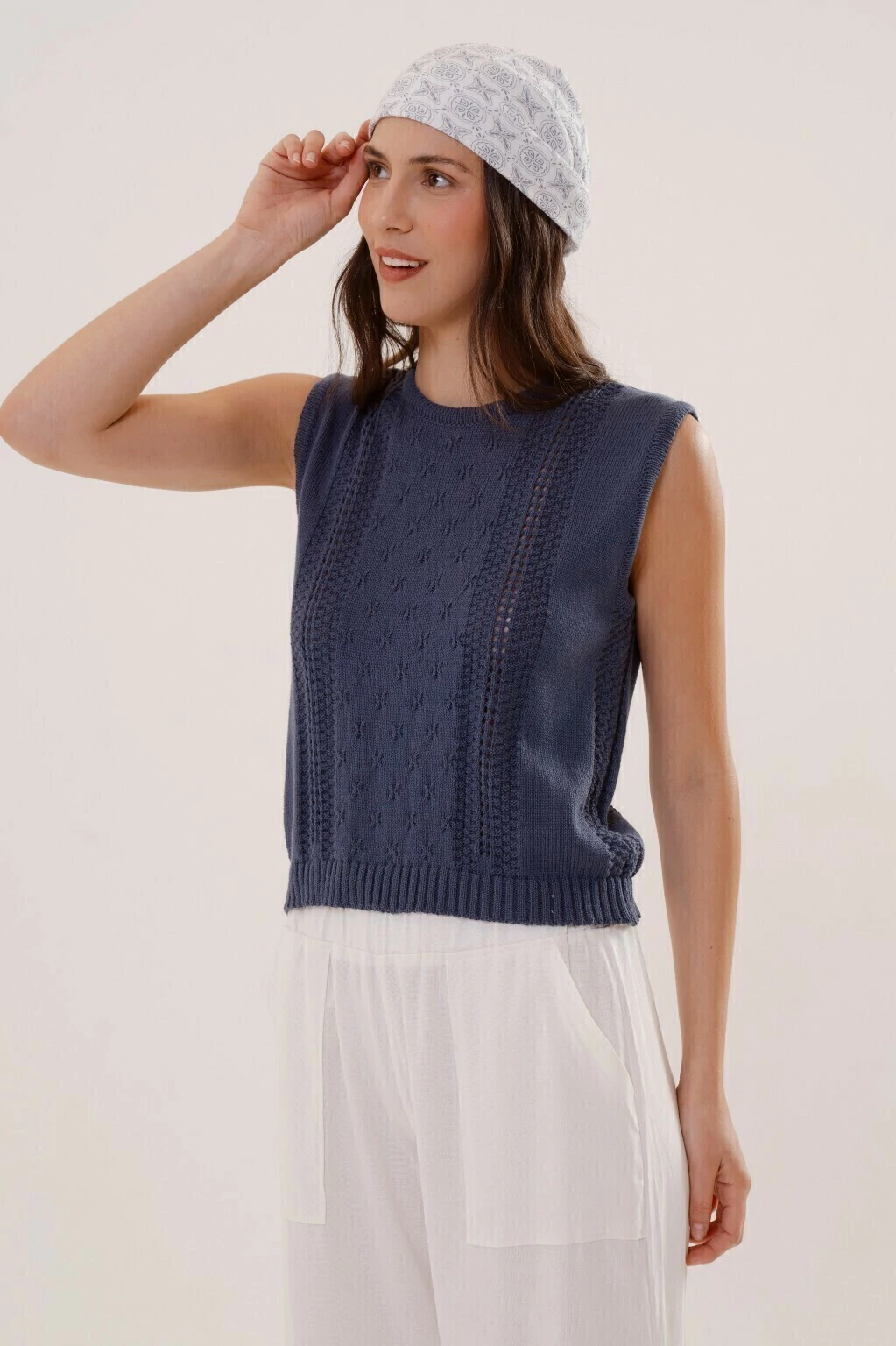 La musculosa Spezie, diseñada en conjunto con el short Pomodoro, es versatil por su silueta y fresca por ser tejida con hilo de algodón.