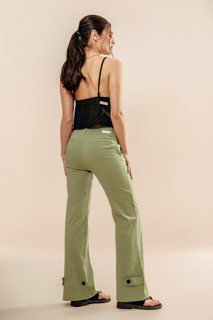 Presentamos al pantalon Lophelia, estrella de la linea, que presenta la novedad de charreteras en botamangas, ajustables según el look deseado.