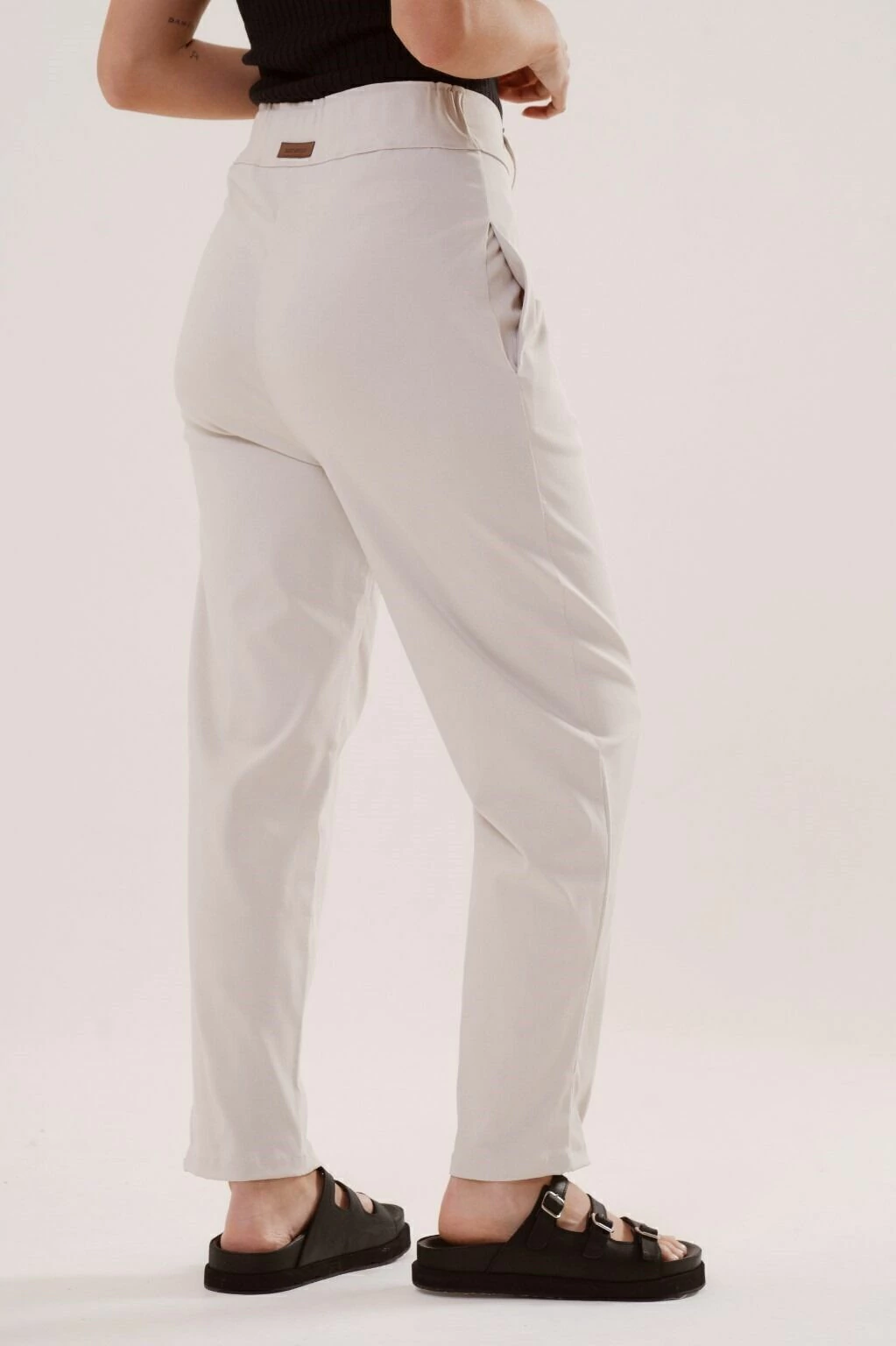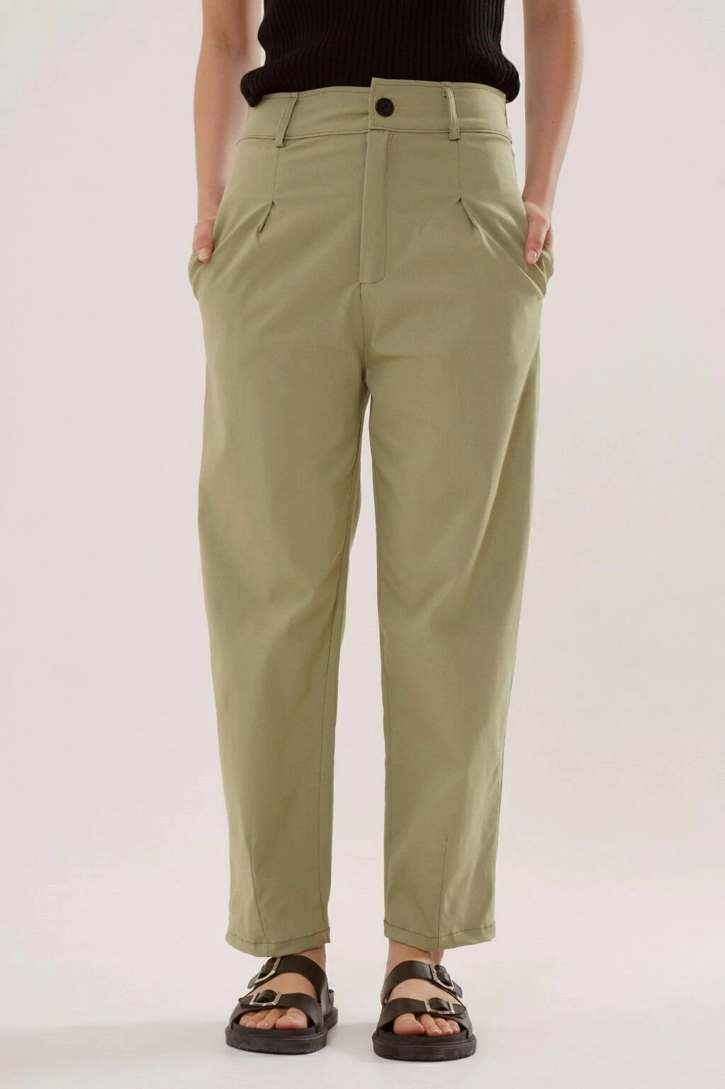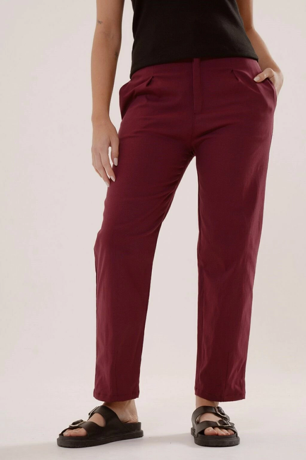 El pantalon Marinella de tiro medio,silueta recta con pinzas en el frente y bolsillos laterales, con elástico en cintura trasera,esta confeccionado en tela Bengalina, confortable y que se adapta al cuerpo.