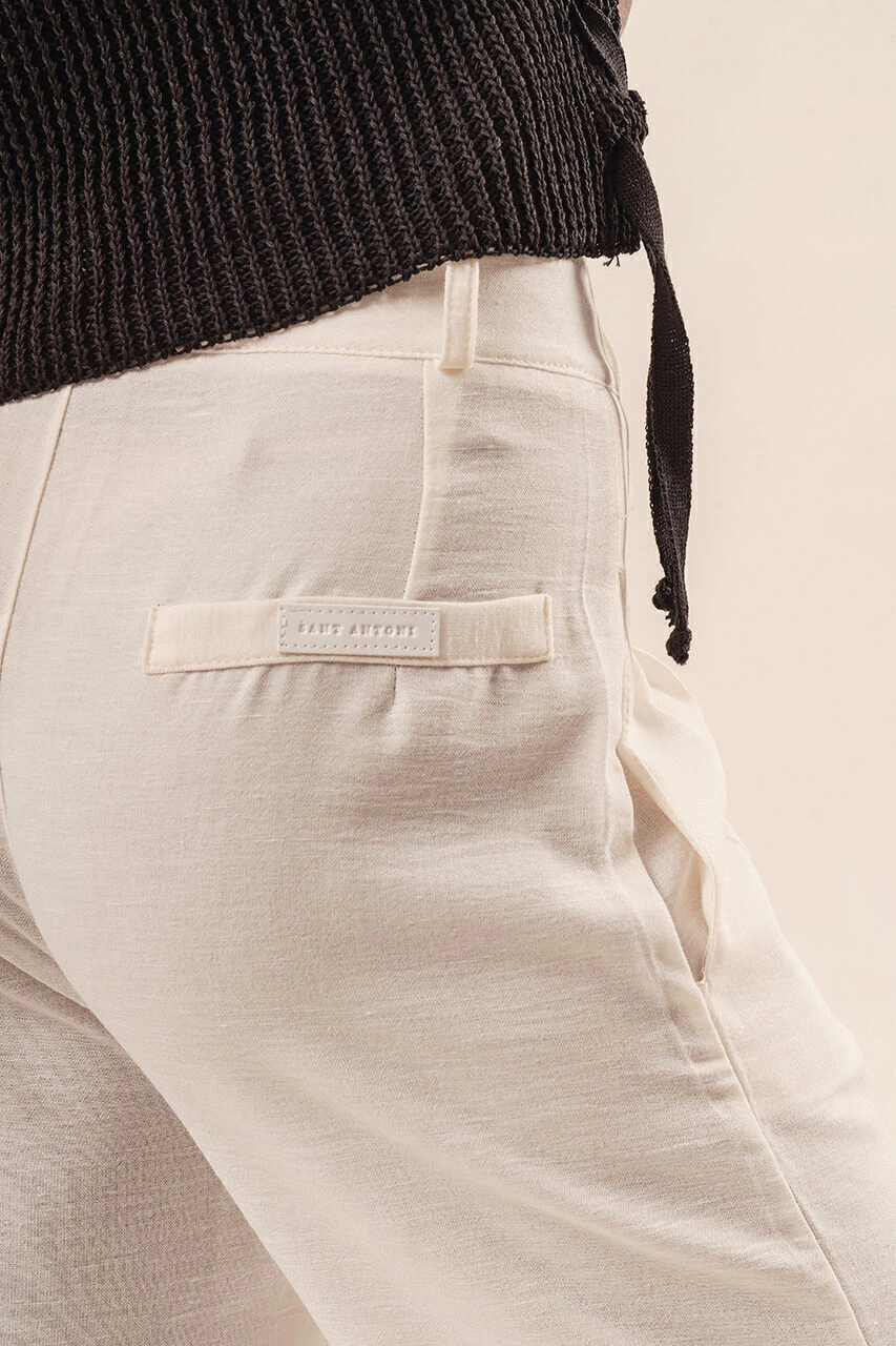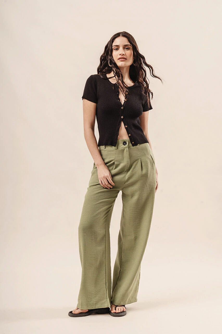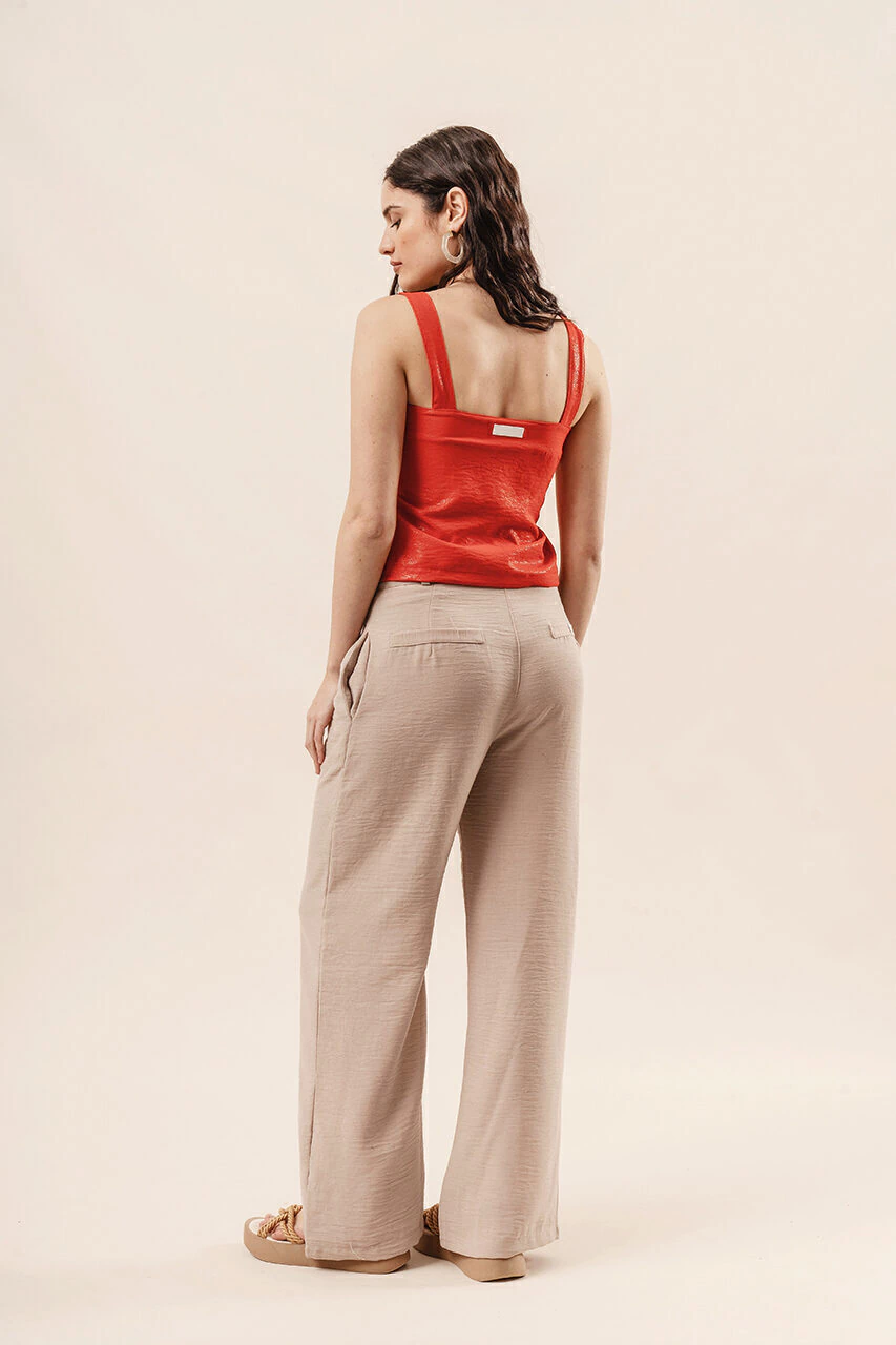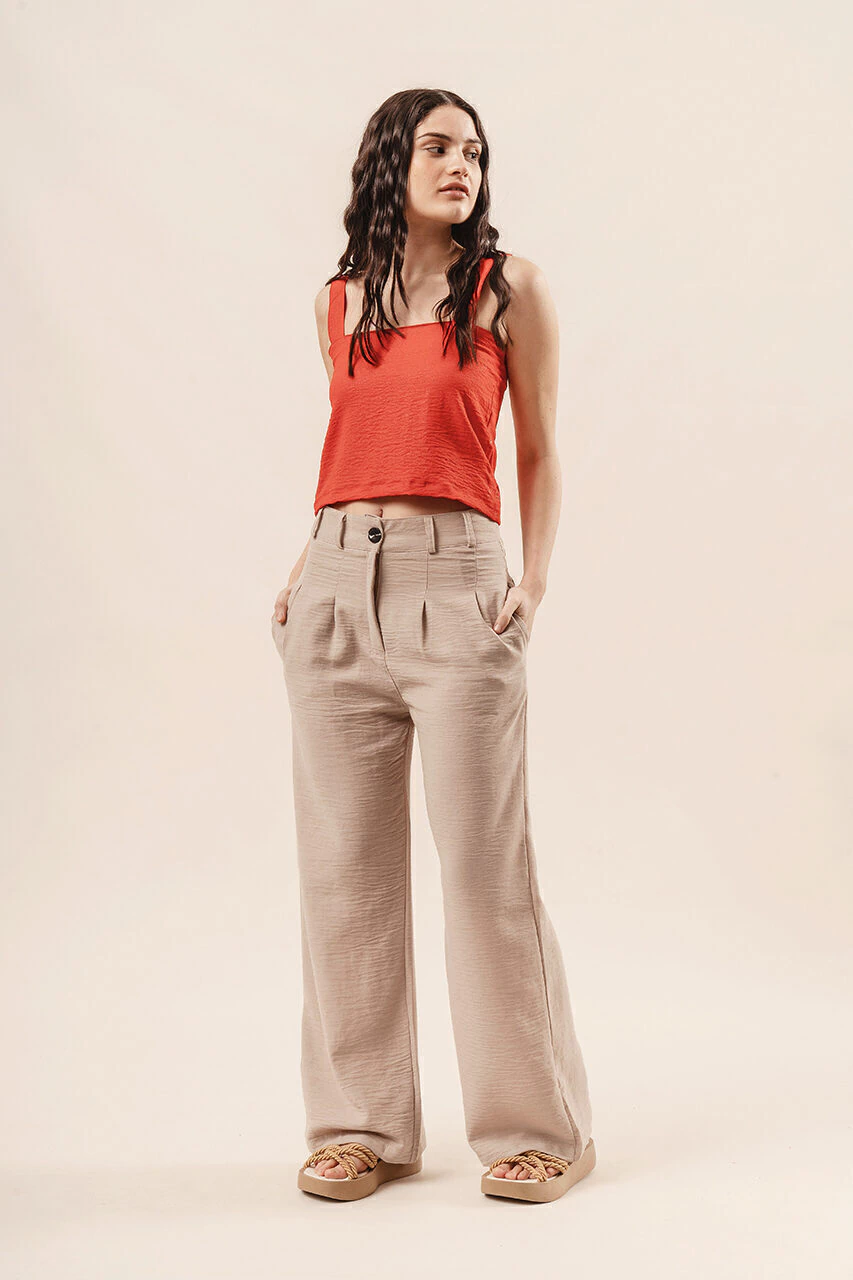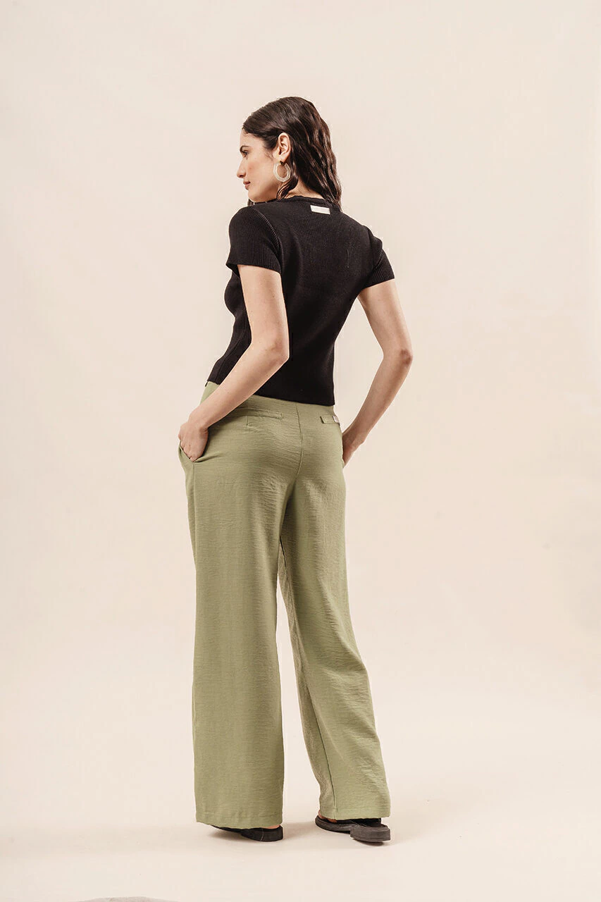 El pantalon Potenza, de tiro medio y pinzas,de tela liviana y fresca, ofrece elegancia,movimiento y comodidad.