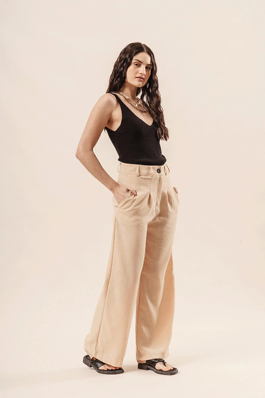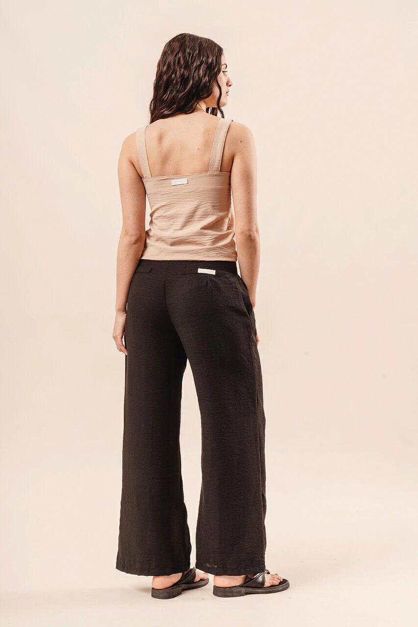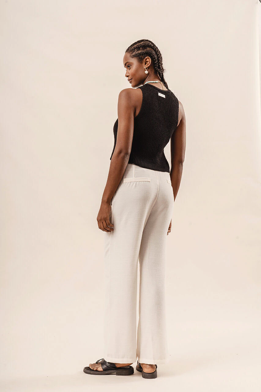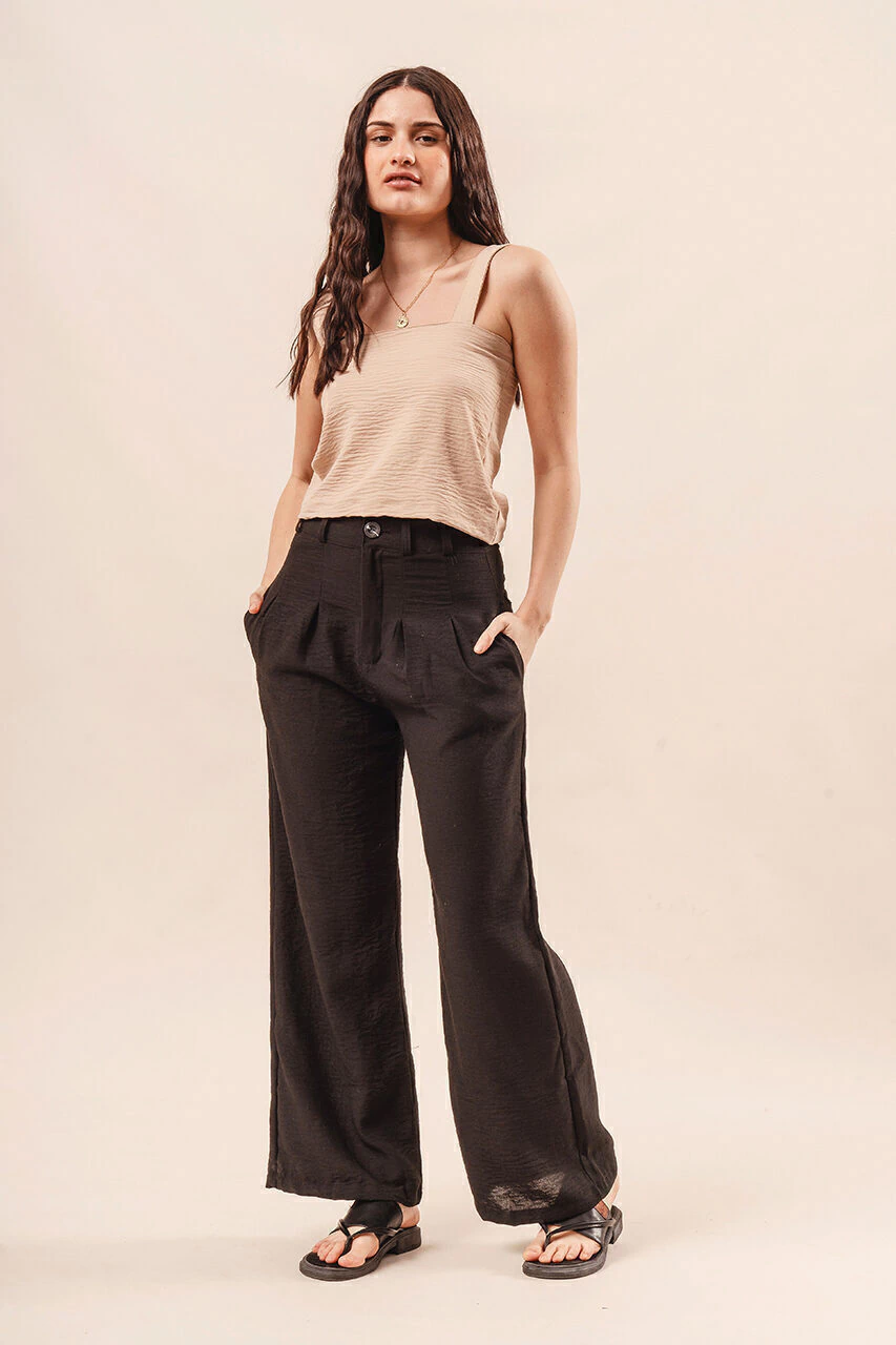El pantalon Potenza, de tiro medio y pinzas,de tela liviana y fresca, ofrece elegancia,movimiento y comodidad.