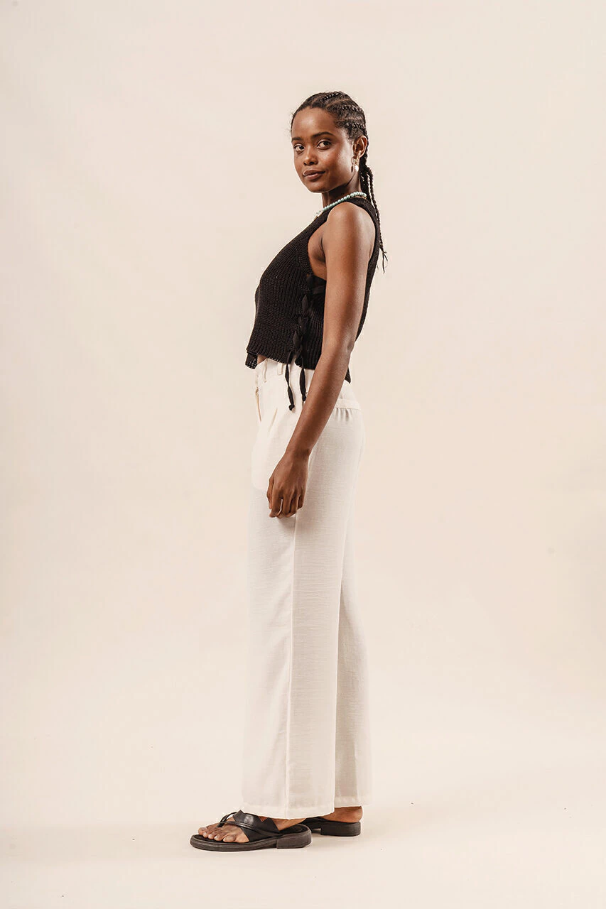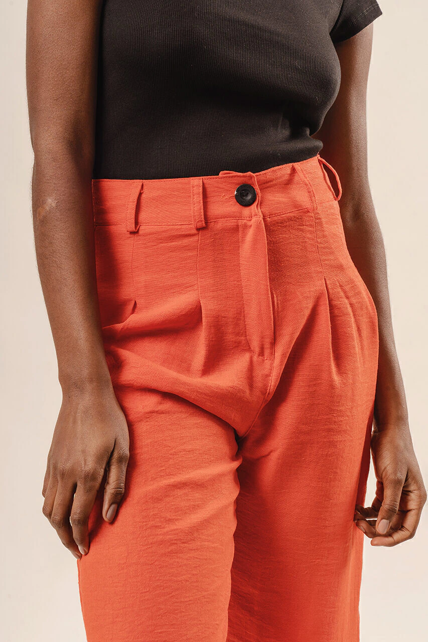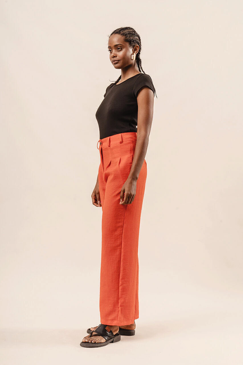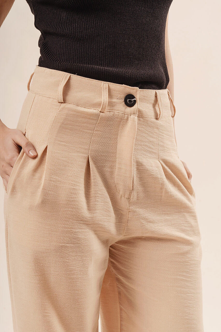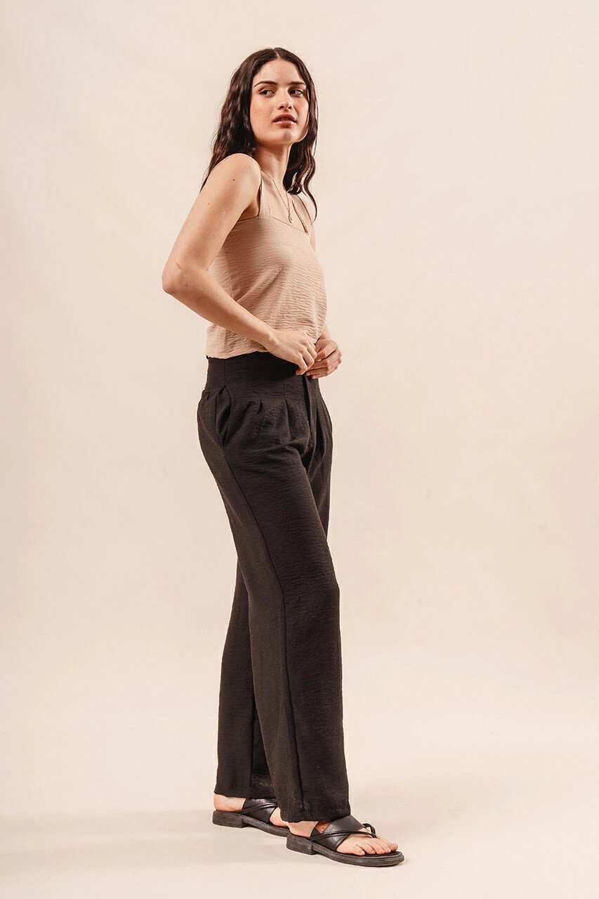 El pantalon Potenza, de tiro medio y pinzas,de tela liviana y fresca, ofrece elegancia,movimiento y comodidad.