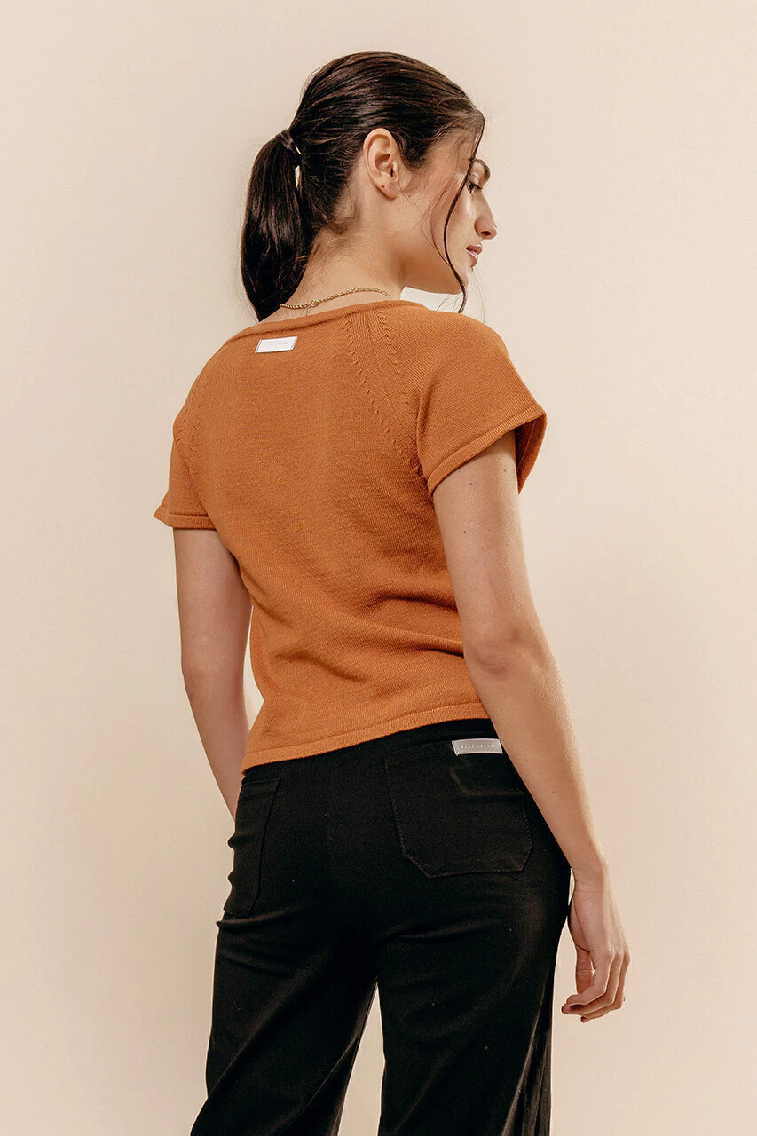 La remera Alboran, de escote medio bote y mangas ranglan, la convierten en una prenda fácilmente combinable.