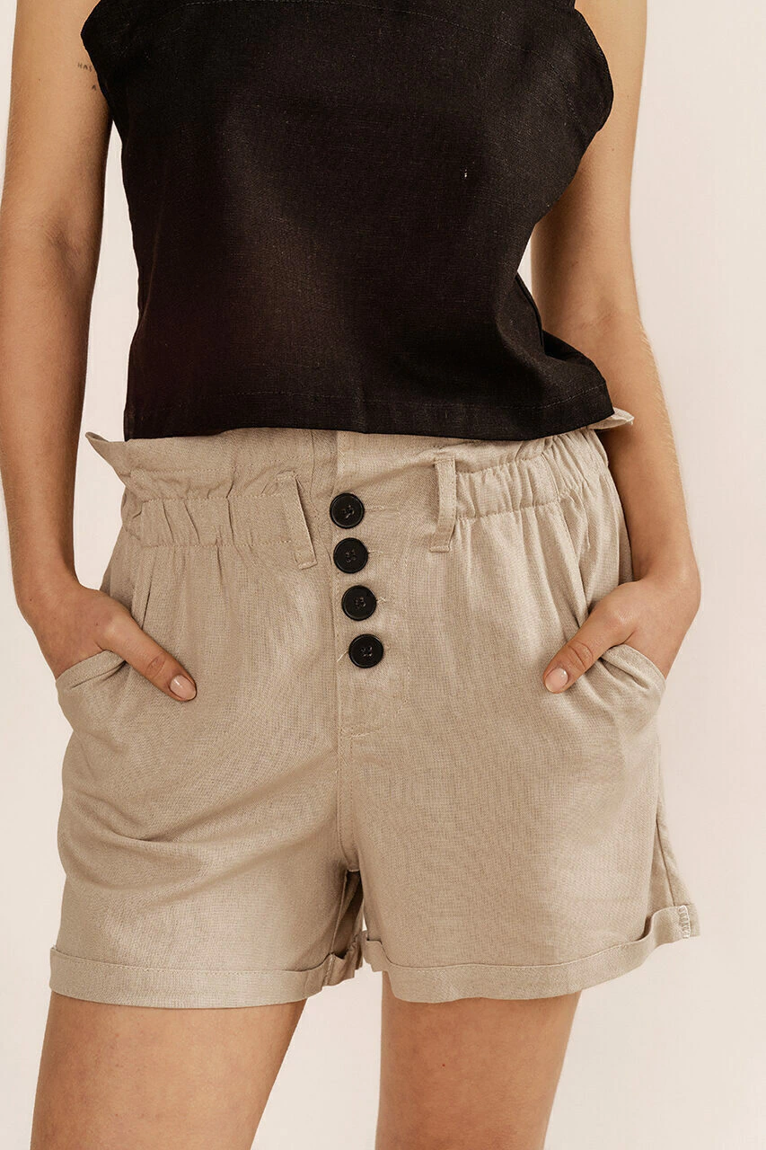 Tiene una textura única y te aporta versatilidad: podés usarlo de día o de noche y sentirte radiante siempre. Queda perfecto con nuestros tops tejidos. Más detalles de nuestro Short de lino Sitges :