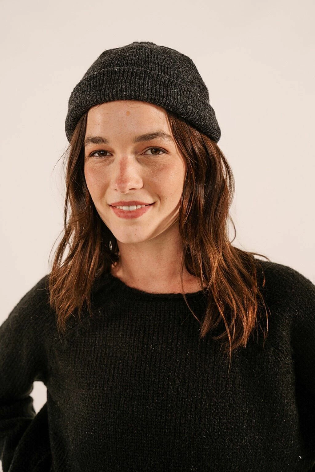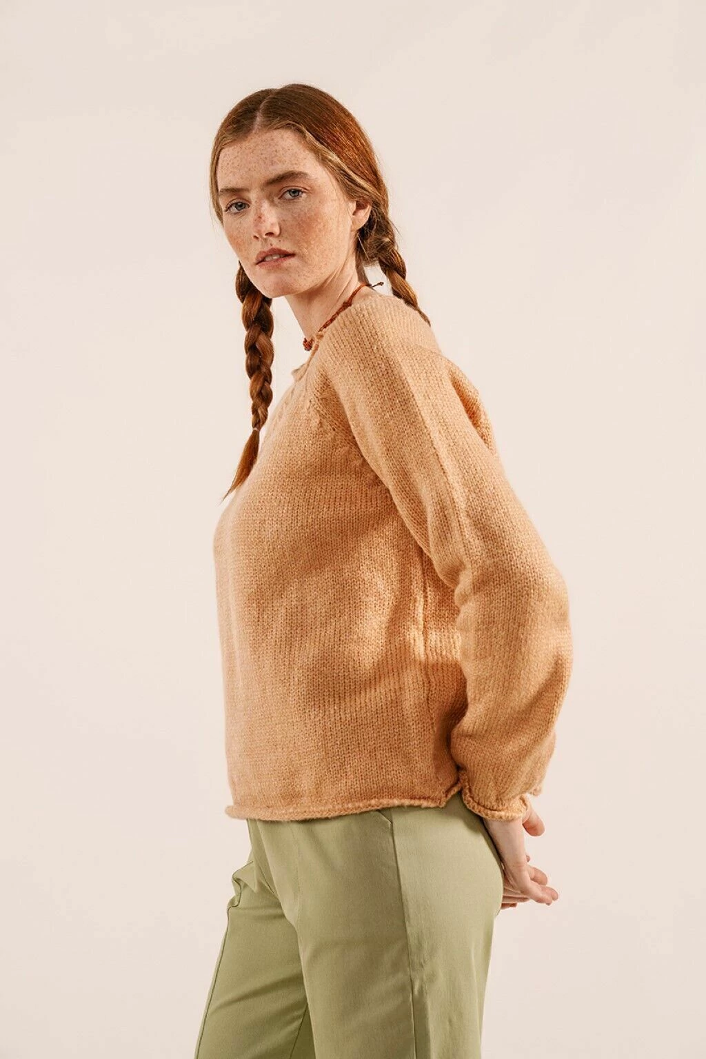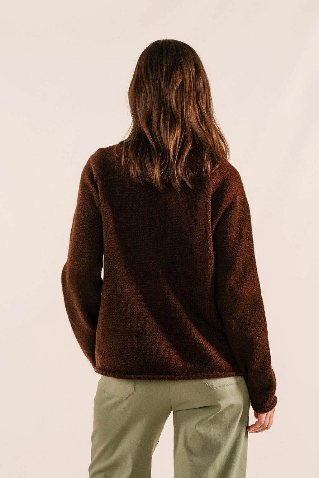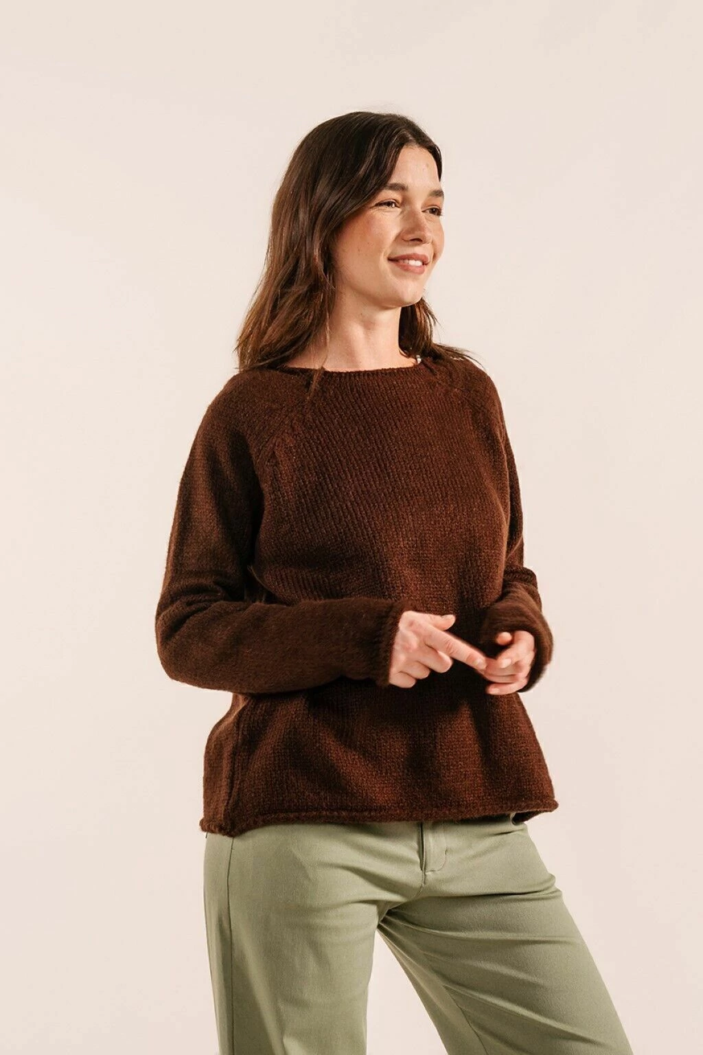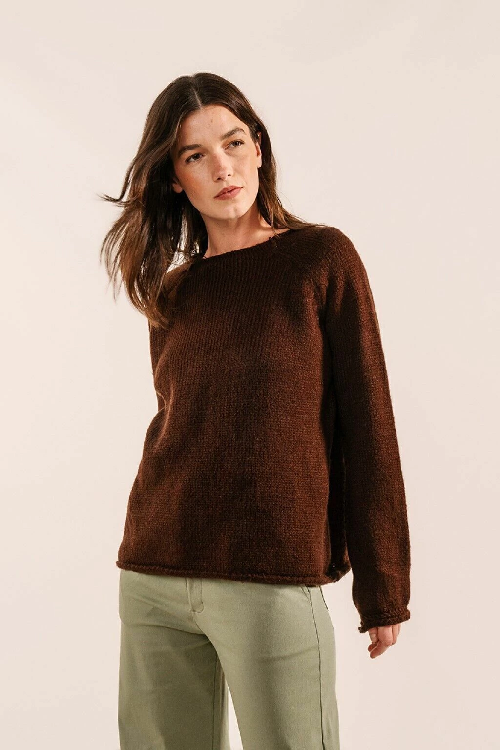 El sweater lagunilla presenta una silueta suelta y holgada, con detalles de puños enrulados y mangas globo. Tejida con hilado Fancy, abrigado y liviano a la vez.