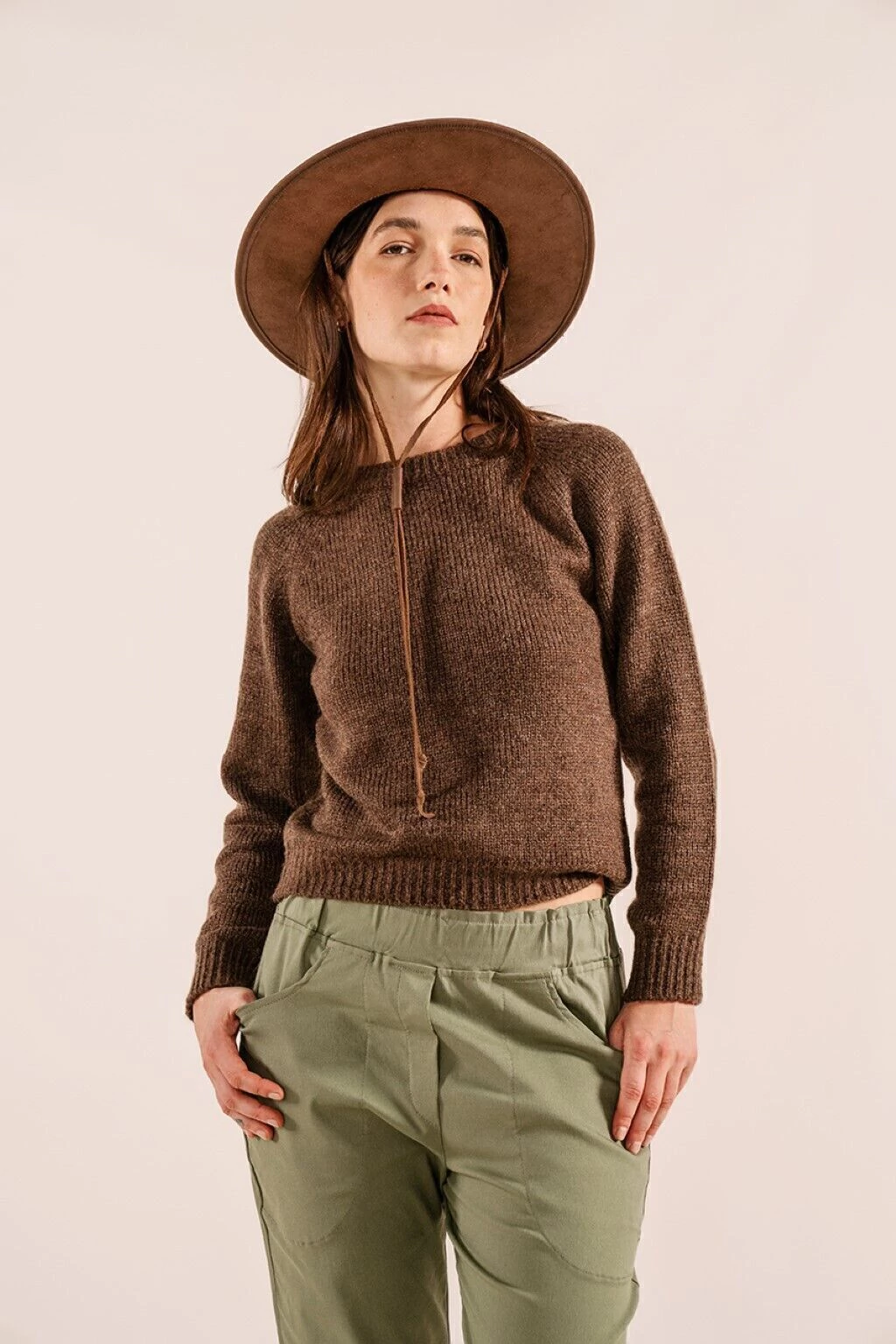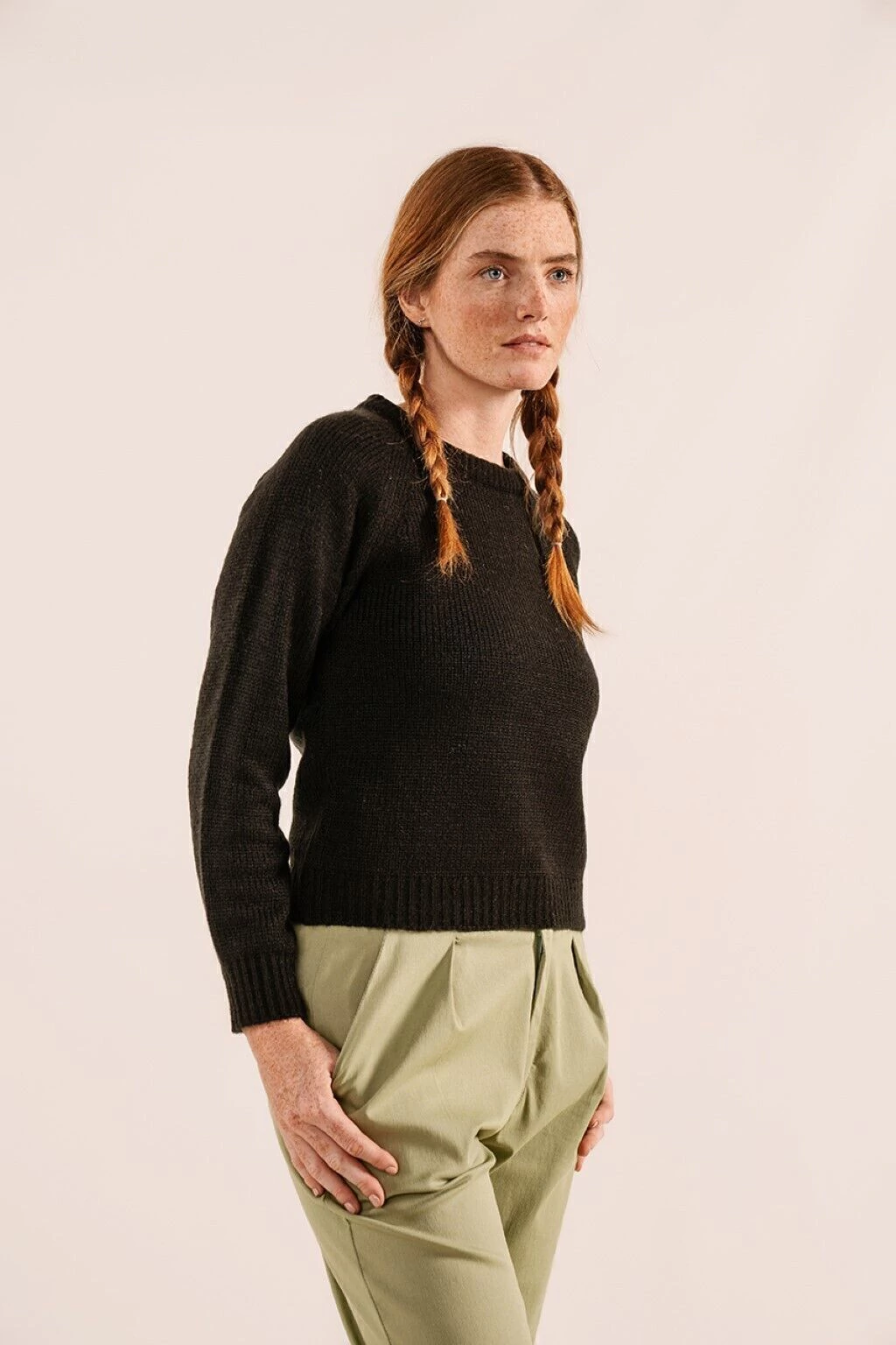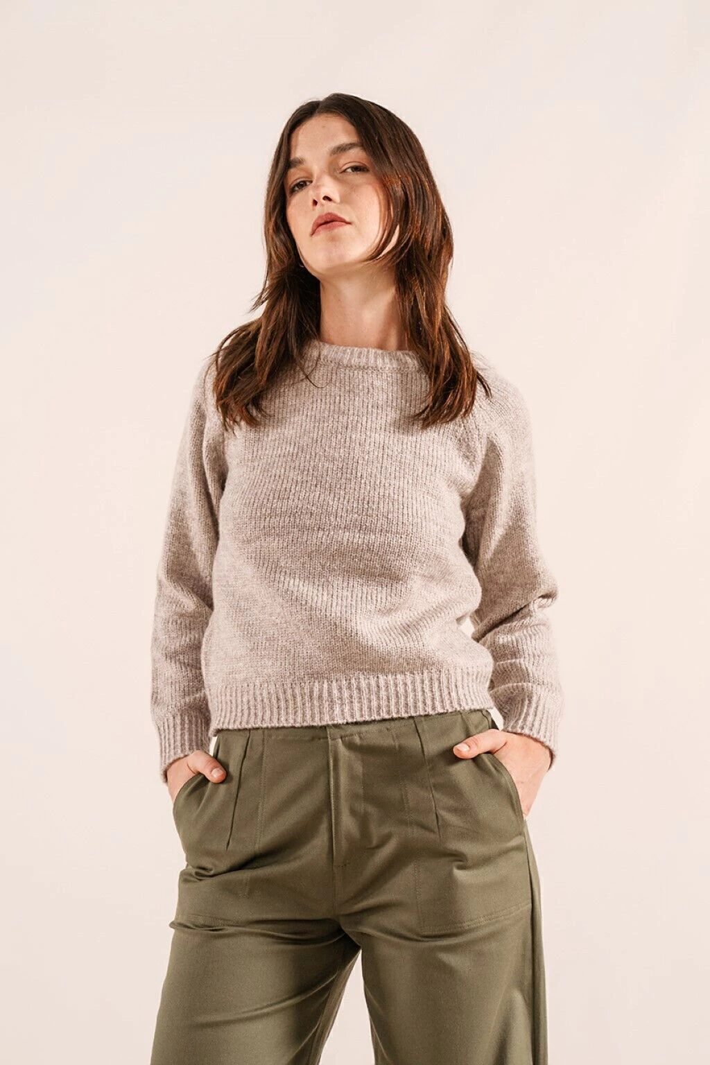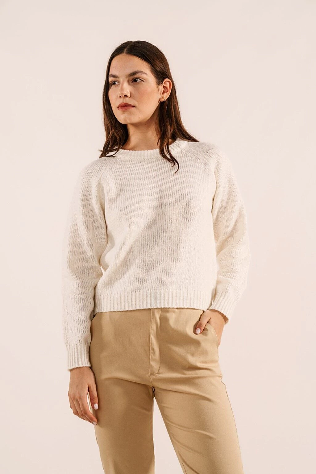 Sweater liso, tejido en jersey y de manga ranglan. Destaca por su abrigo y suavidad. Es una prenda versatil para el uso diario.
