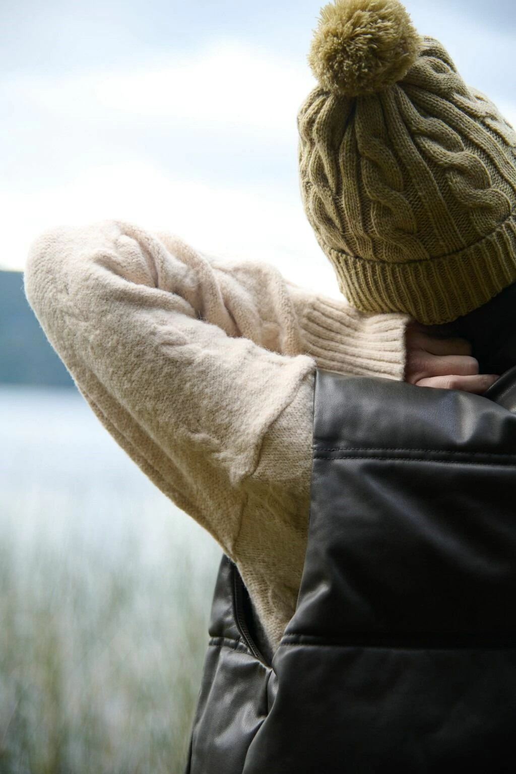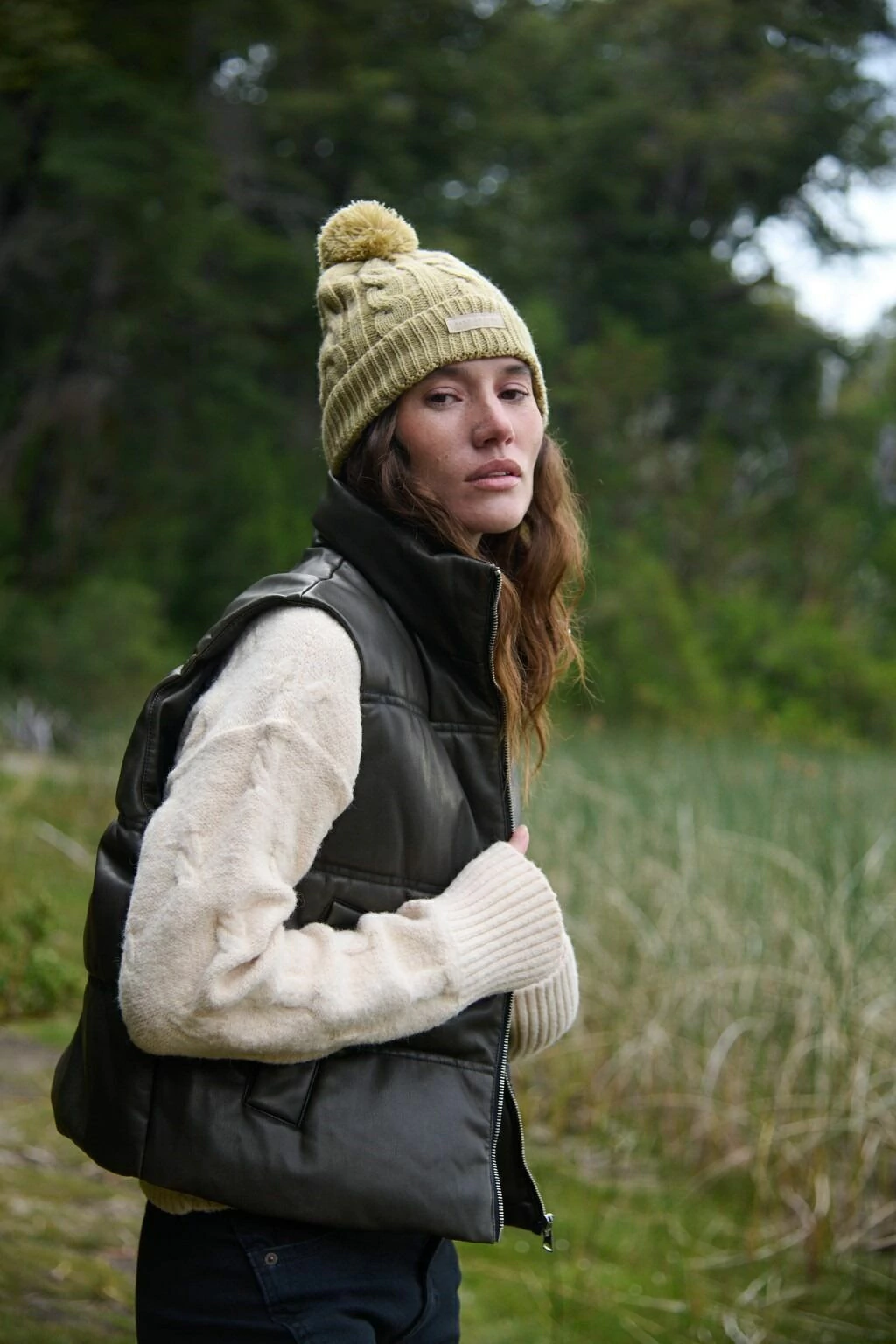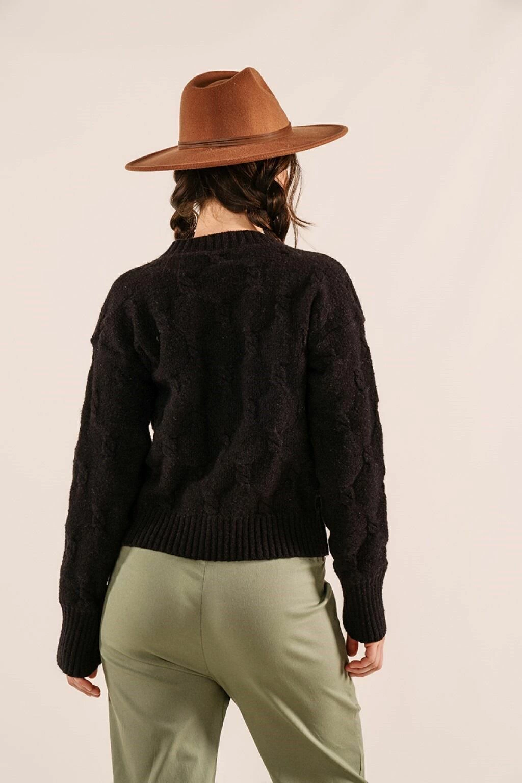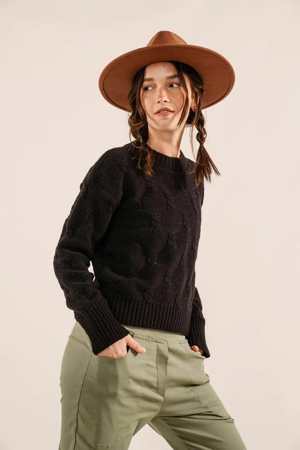 Un sweater con estilo rustico, con su textura de ochos y jersey del reves que lo destacan. Es una prenda muy abrigada y suave.